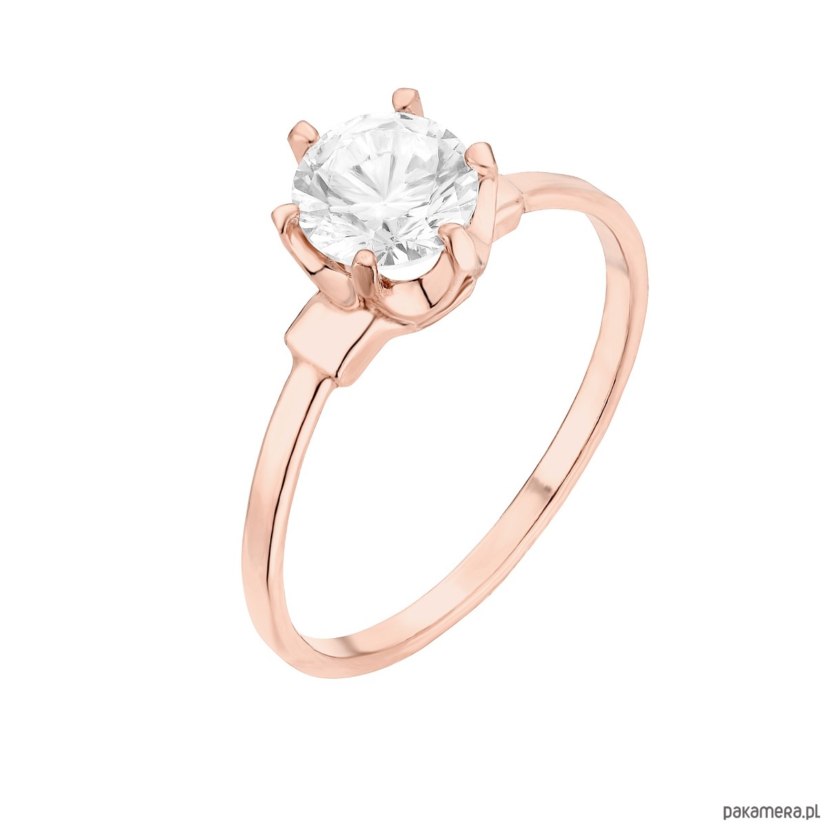 Złoty pierścionek z małą cyrkonią wykonany ze srebra 925 powlekanego 18 karatowym różowym złotem.