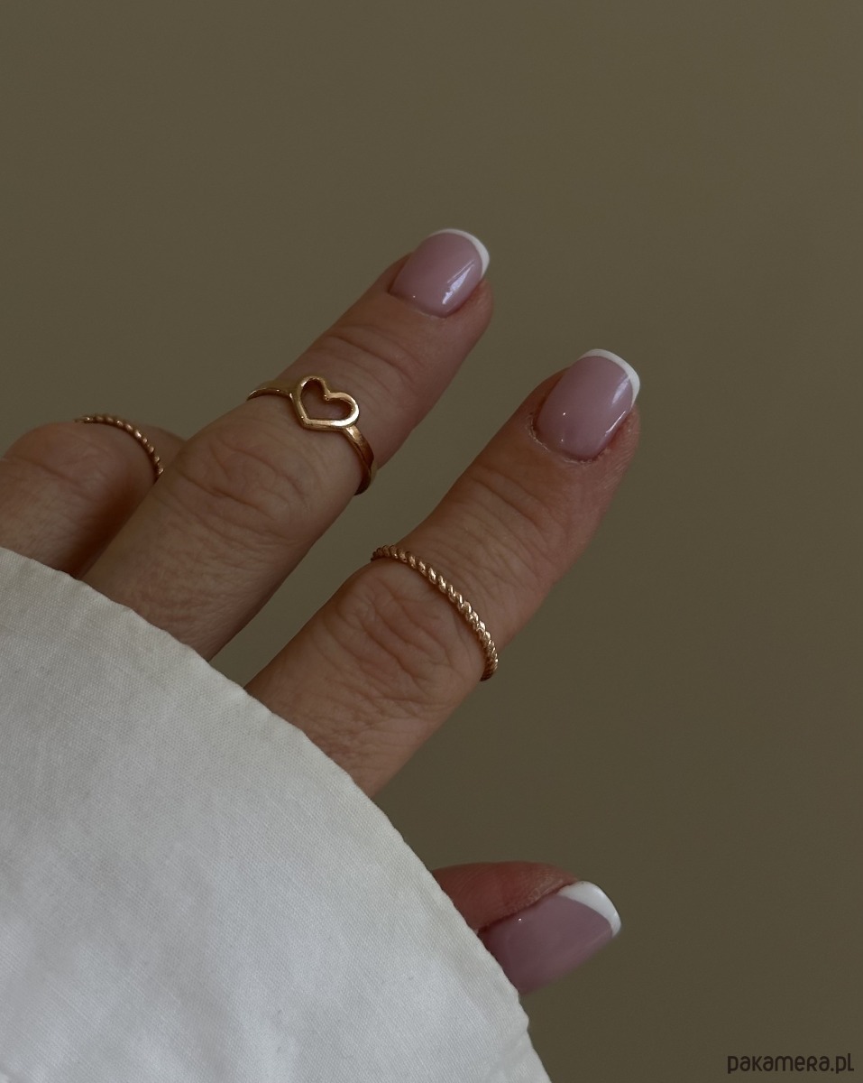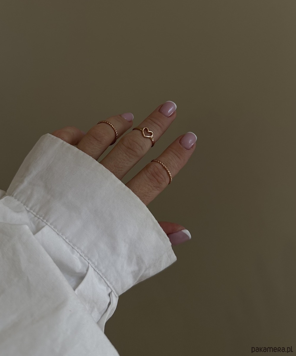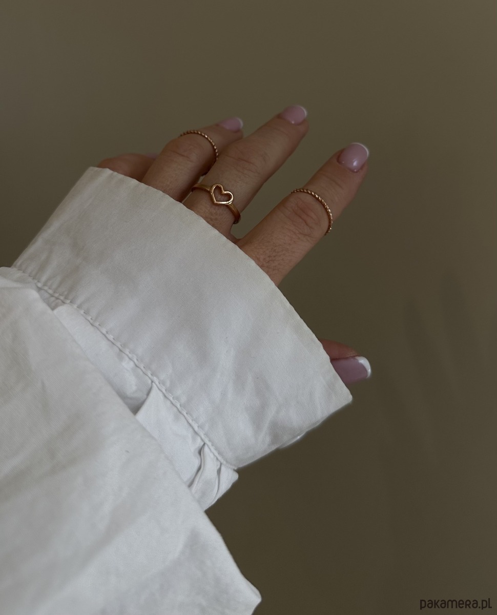 Złoty pierścionek zdobiony serduszkiem. Wszystkie elementy wykonane ze srebra 925 powlekanego 18 karatowym różowym złotem.