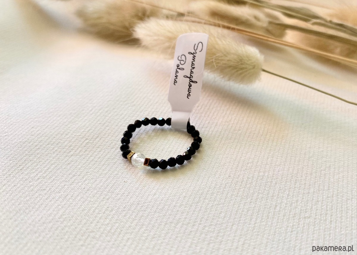 Pierścionek wykonany w całości z kamieni naturalnych oraz wysokiej jakości gumki elastycznej,