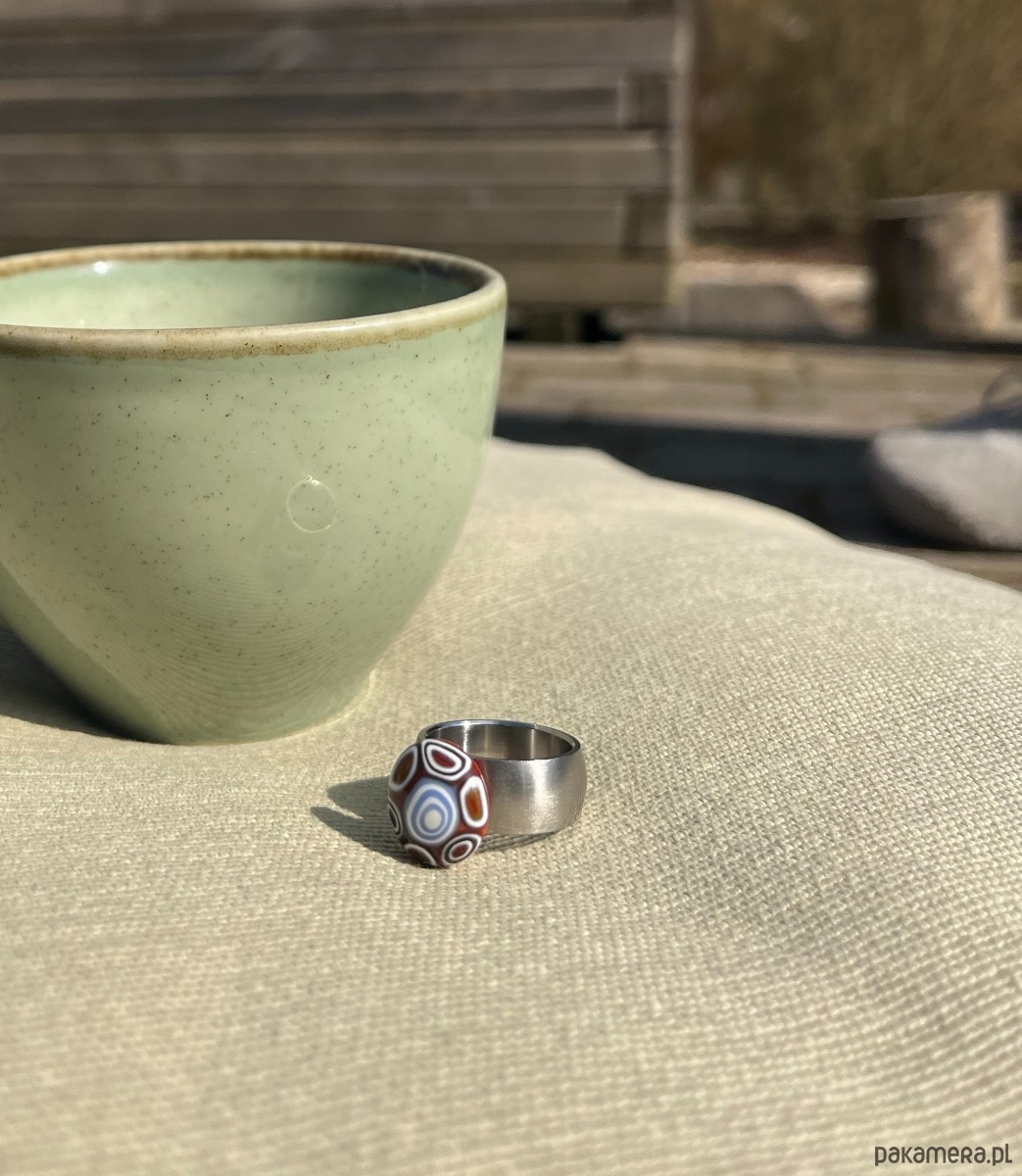 murrini techniką glass fusing. Oczko jest wykonane ręcznie. Dzięki zastosowanej technice jest jedyne w swoim rodzaju, odporne na zarysowania i bardzo trwałe. Średnica oczka około 1,2 cm.