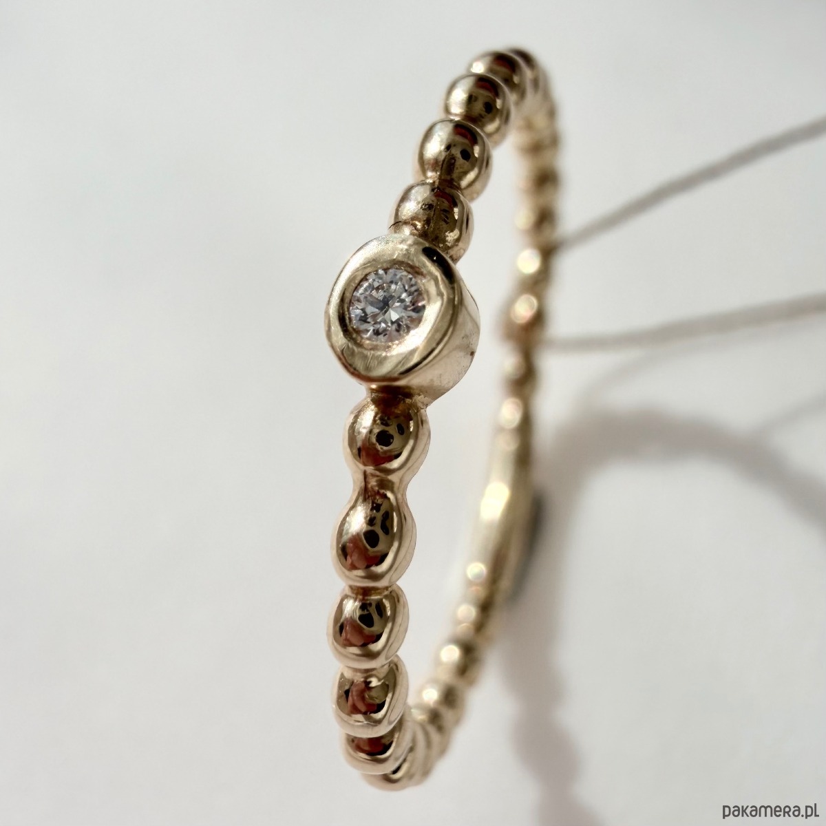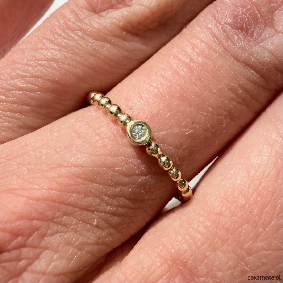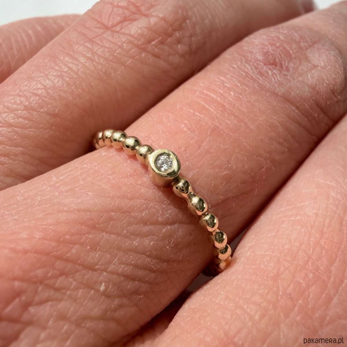 Pierścionek wykonany w całości z żółtego złota w próbie 585 "3" z ręcznie oprawionym naturalny brylantem 0,020ct P/H