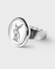 Grafika ukryta w prostym pierścieniu pod osłoną przeźroczystego półokrągłego szkiełka.