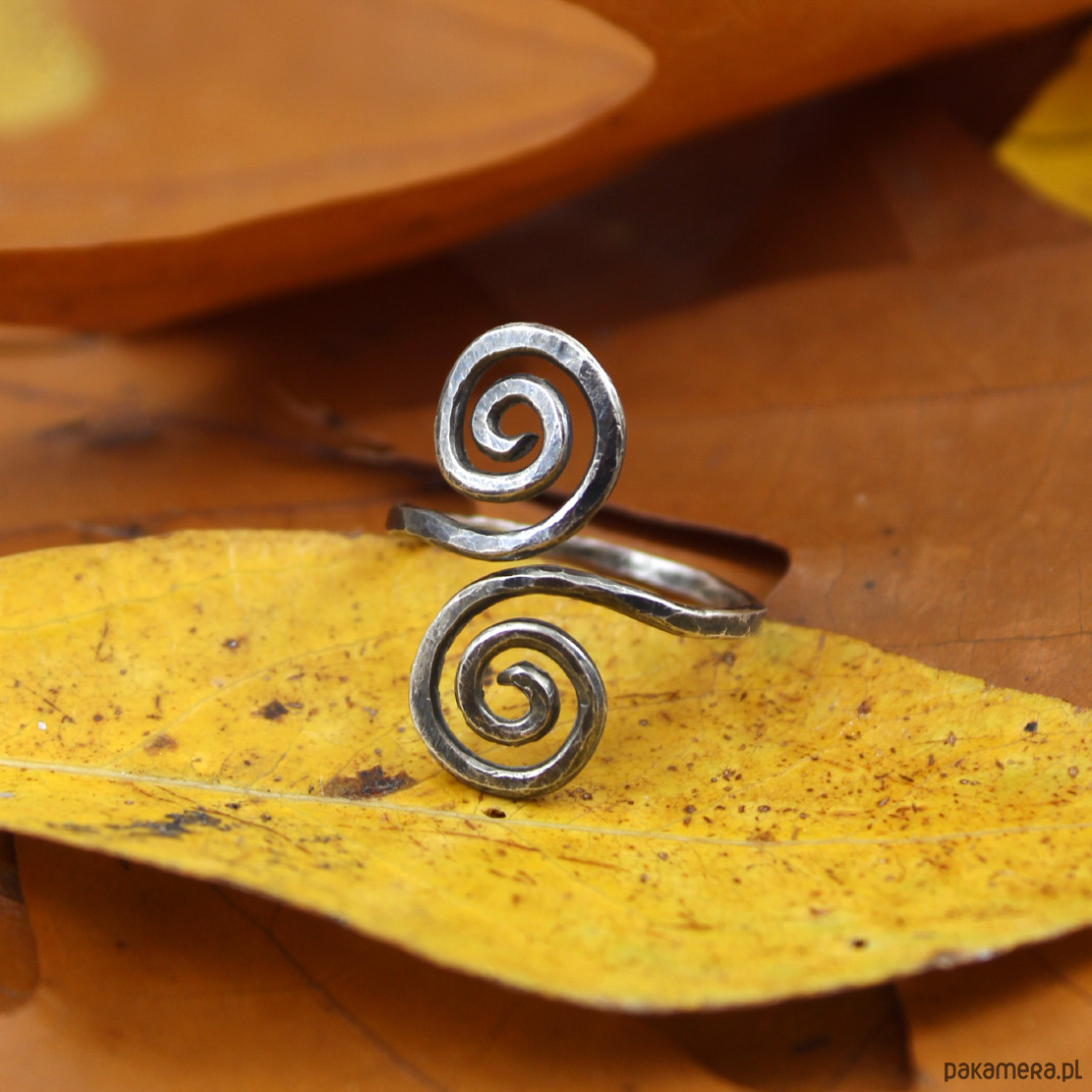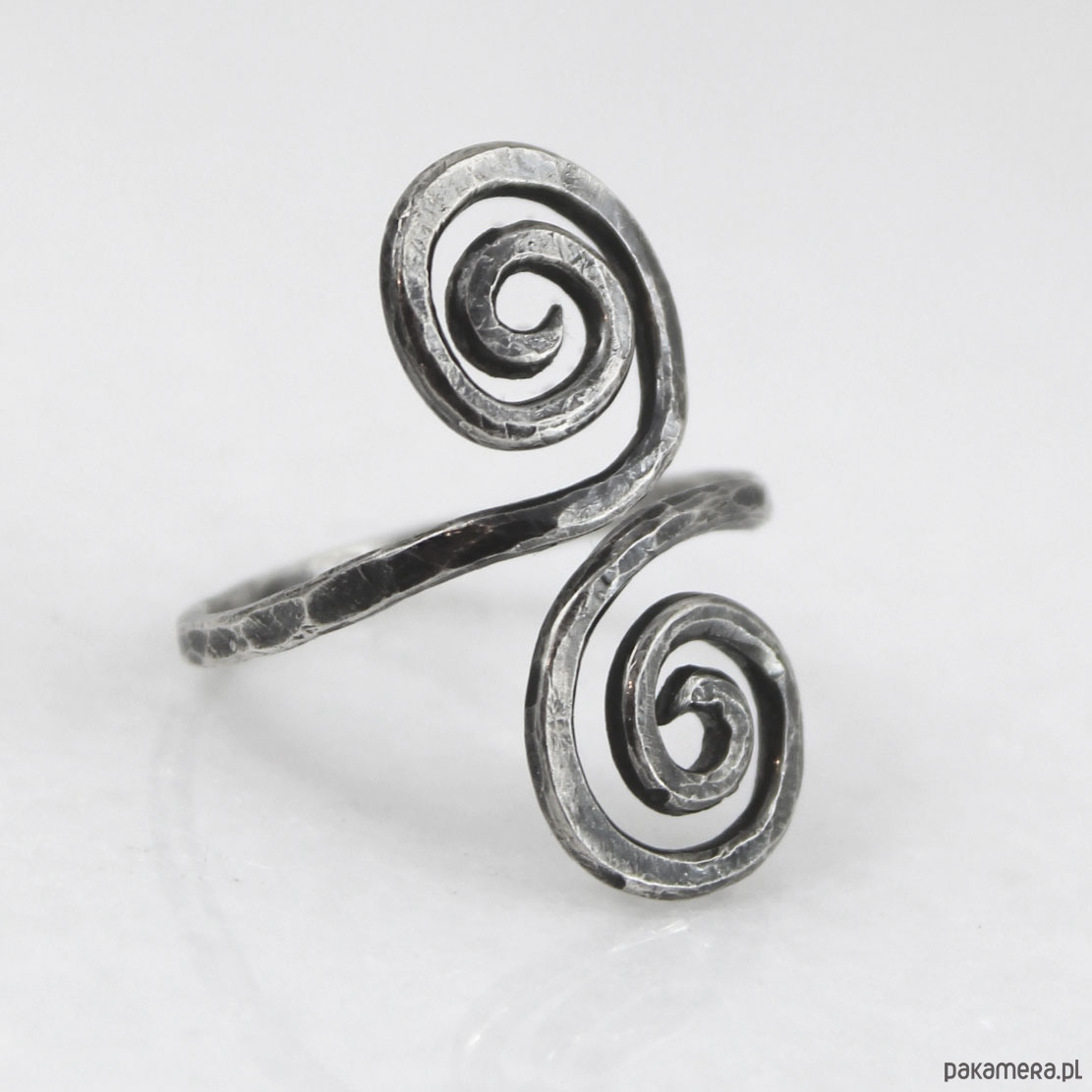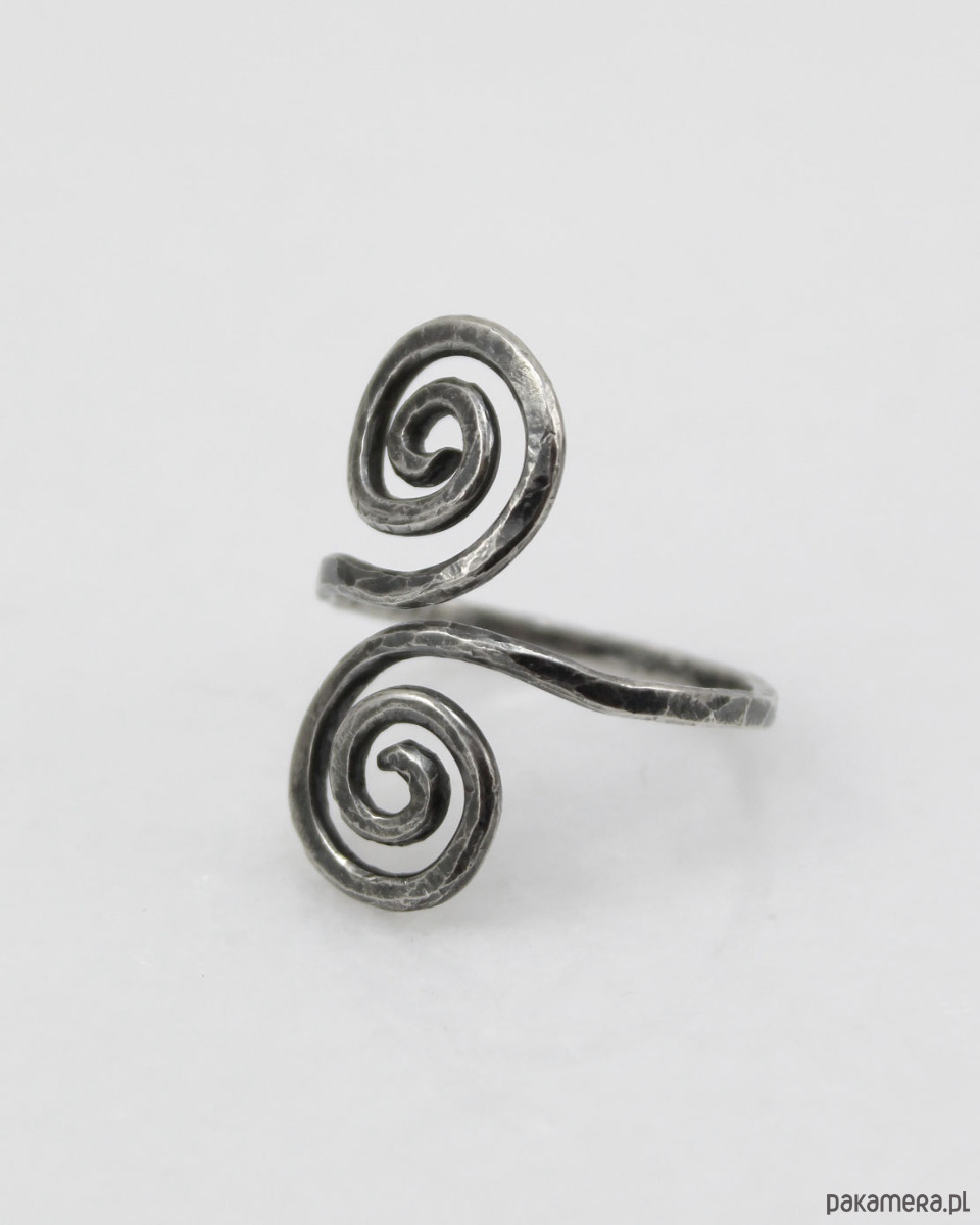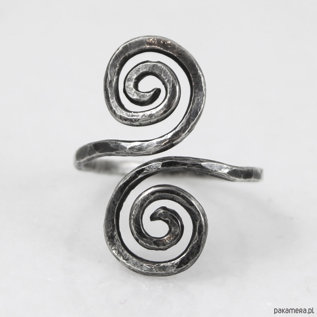 Pierścionek ze srebra luźno inspirowany dawną biżuterią słowiańską.