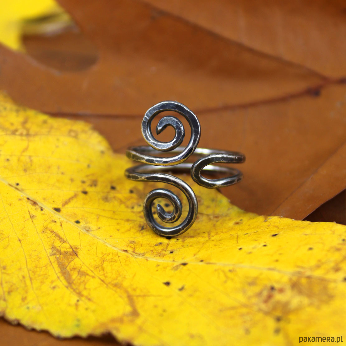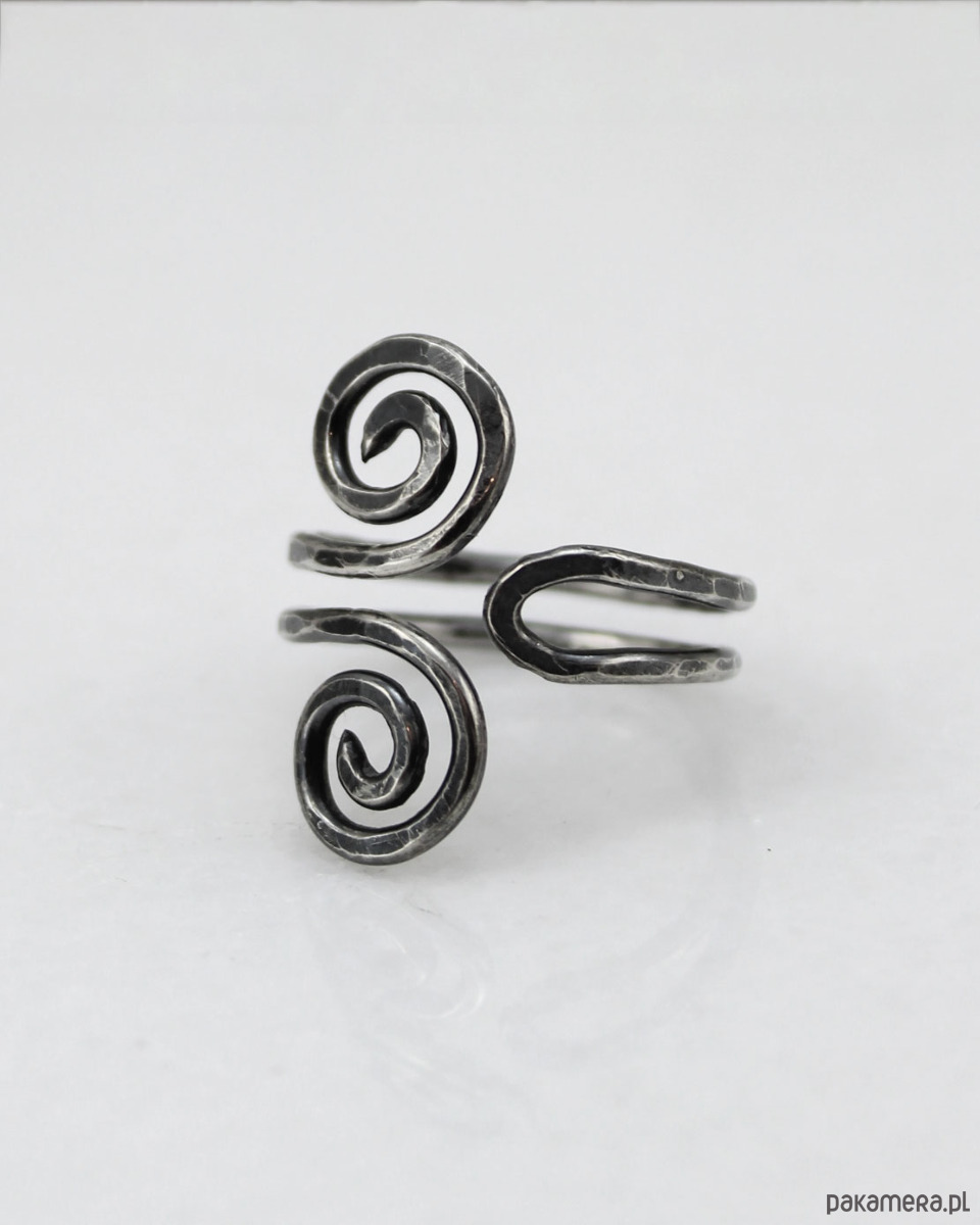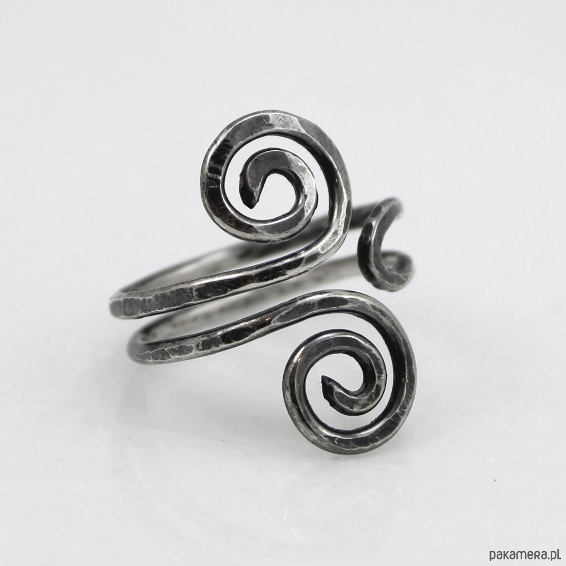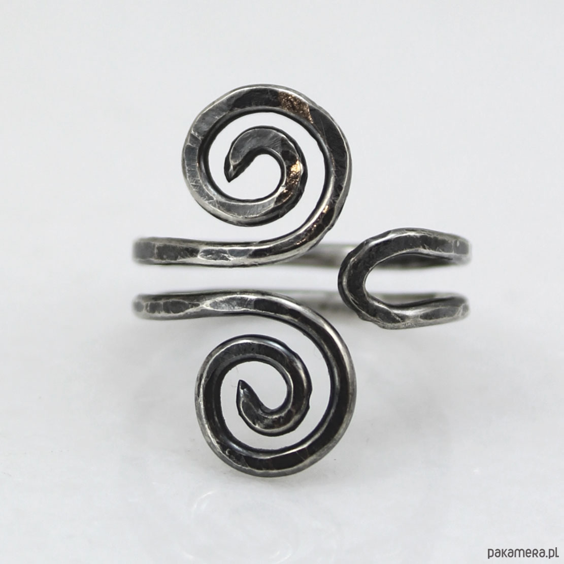 Pierścionek ze srebra luźno inspirowany dawną biżuterią słowiańską.