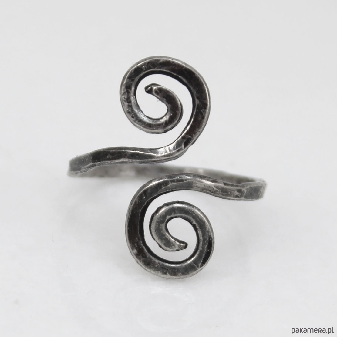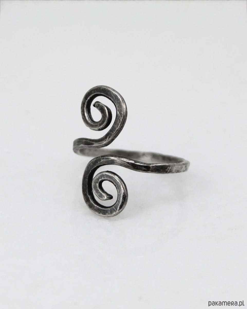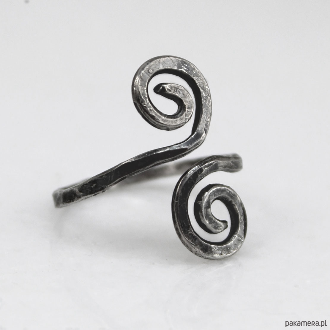 Pierścionek ze srebra luźno inspirowany dawną biżuterią słowiańską.