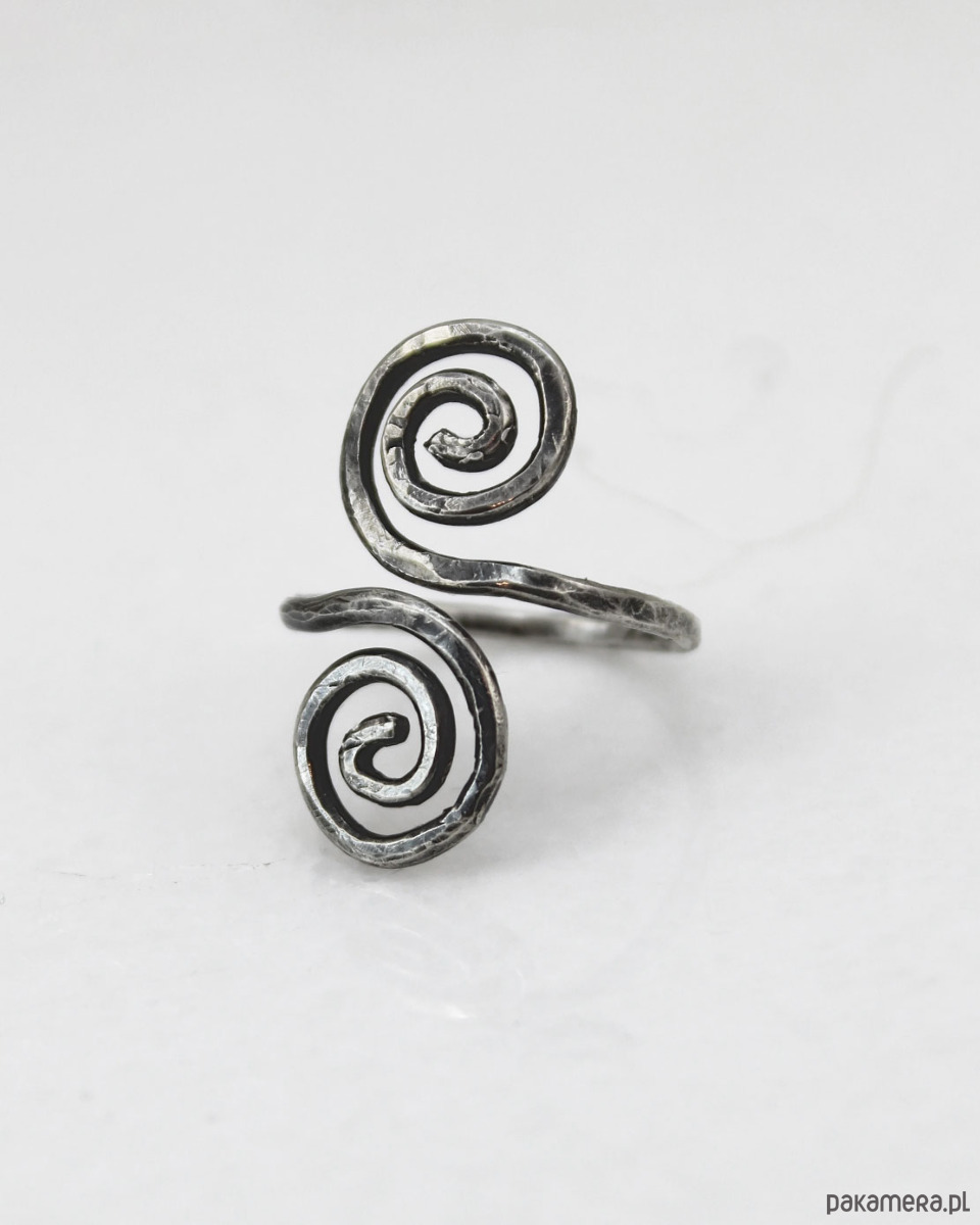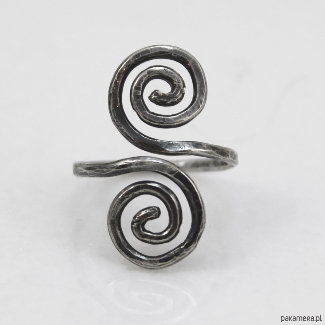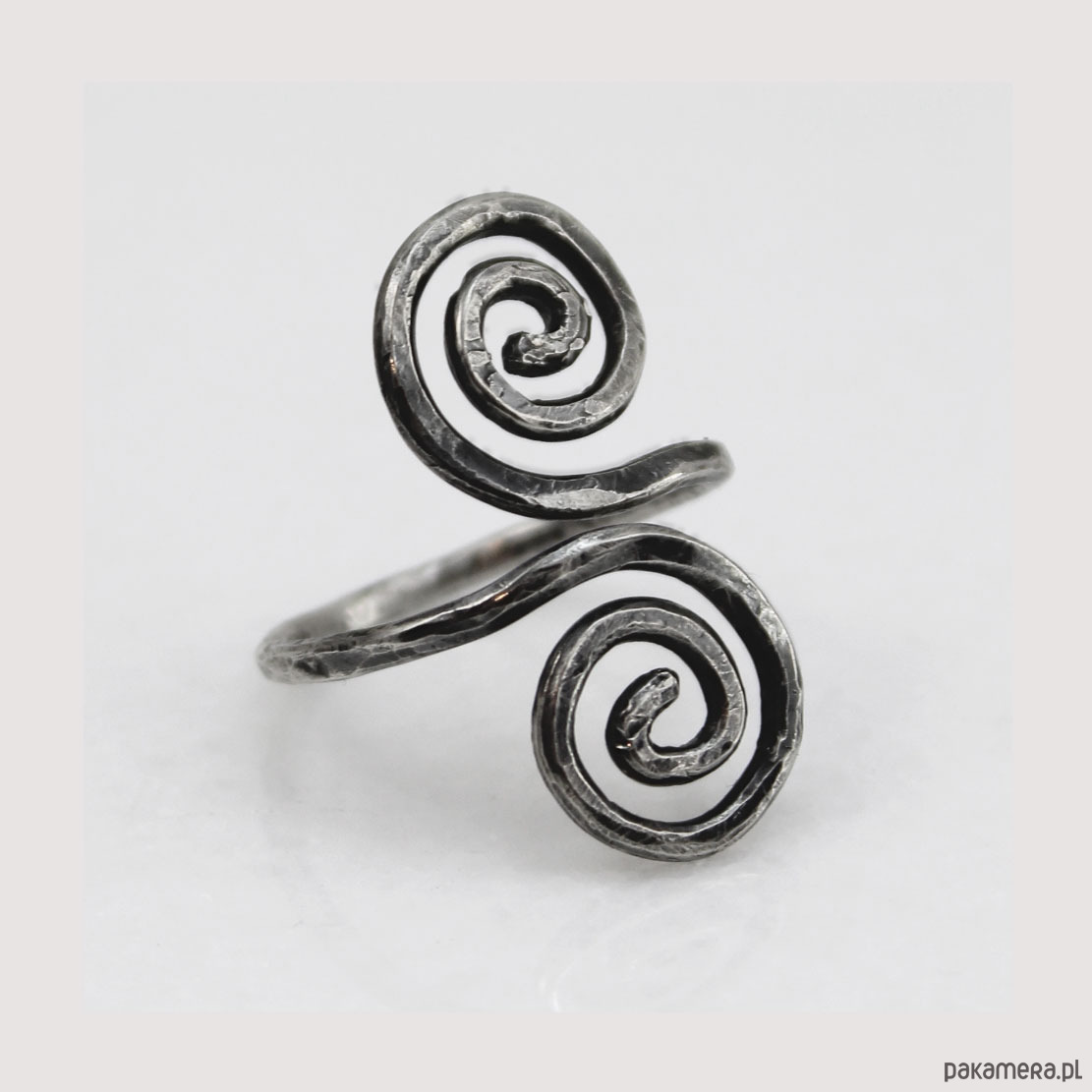 Pierścionek ze srebra luźno inspirowany dawną biżuterią słowiańską.