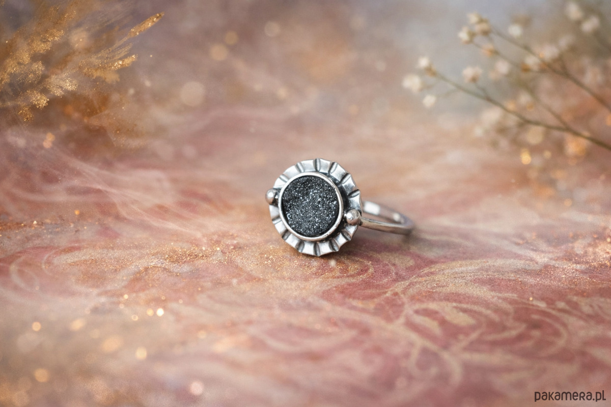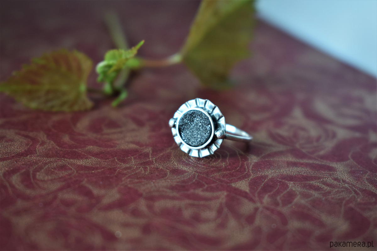Pierścionek ze srebra 925 oraz druzy agatowej.