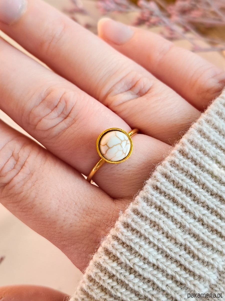 Pierścionek ze stali chirurgicznej kamień naturalny Howlit, na walentynki