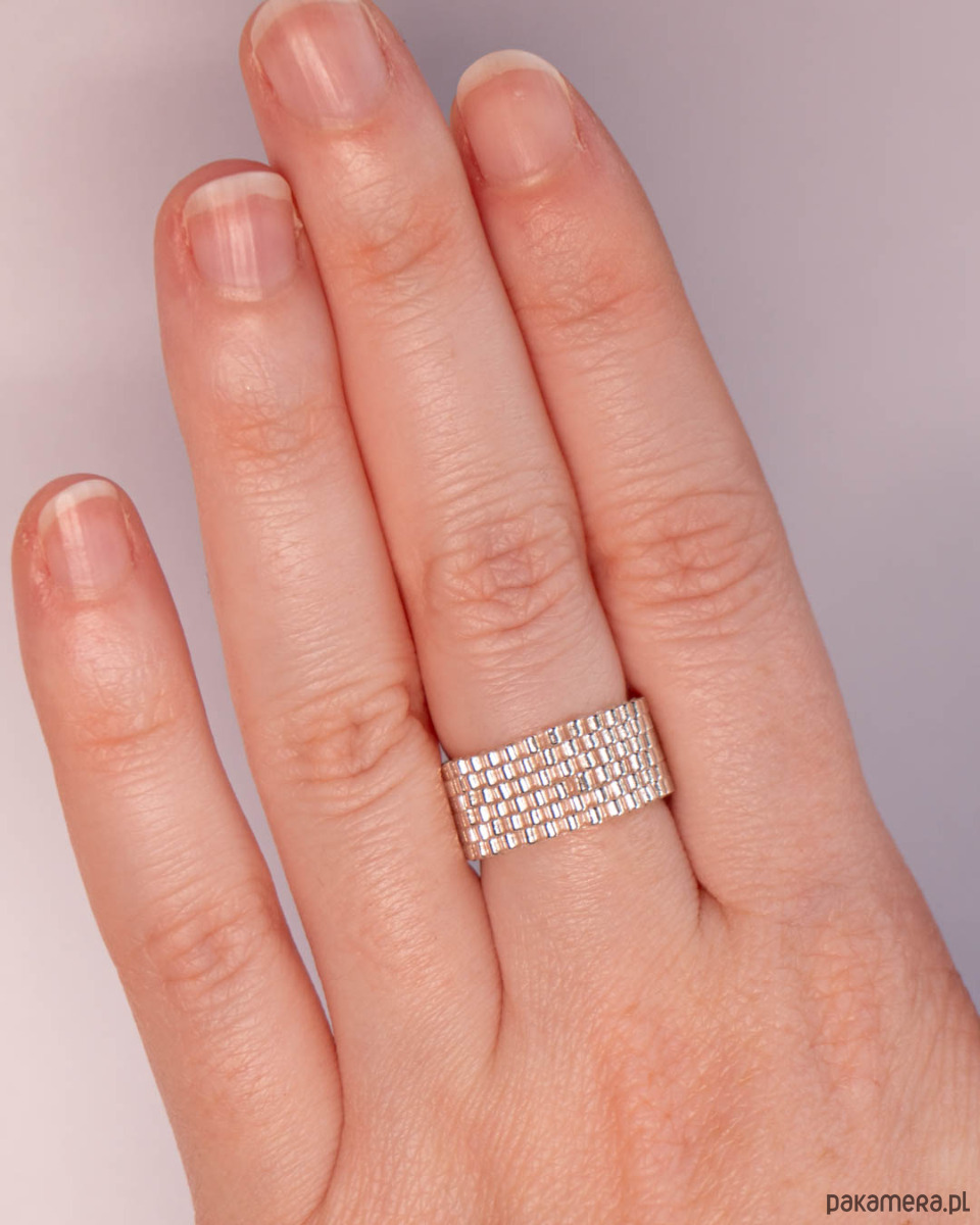 Pierścionek 6-rzędowy, szerokość ok. 8 mm.