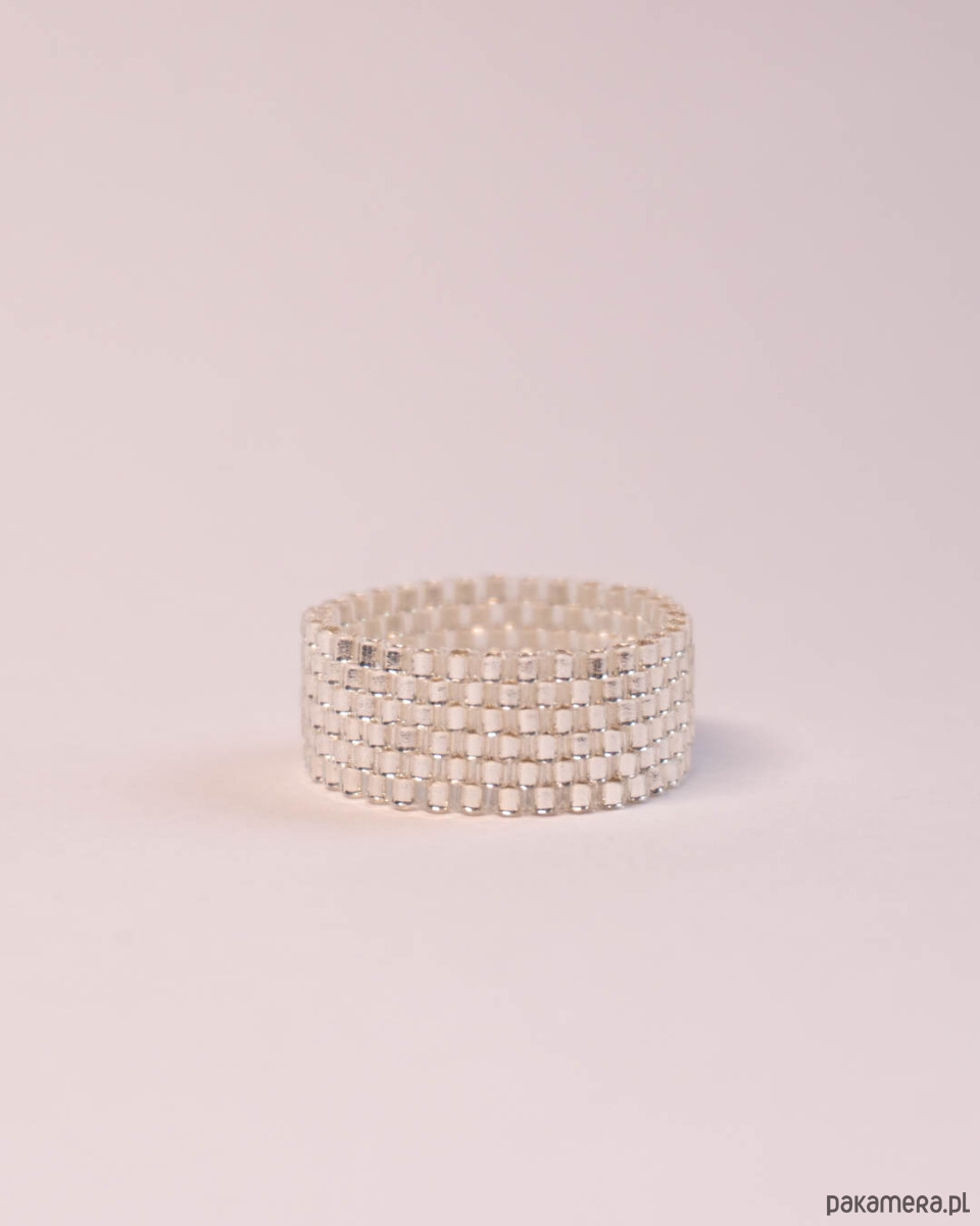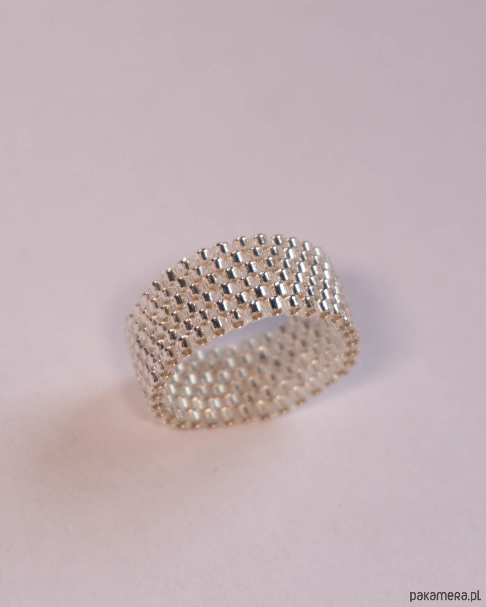 Pierścionek tkany ręcznie metodą peyote ze szklanych japońskich koralików Miyuki.