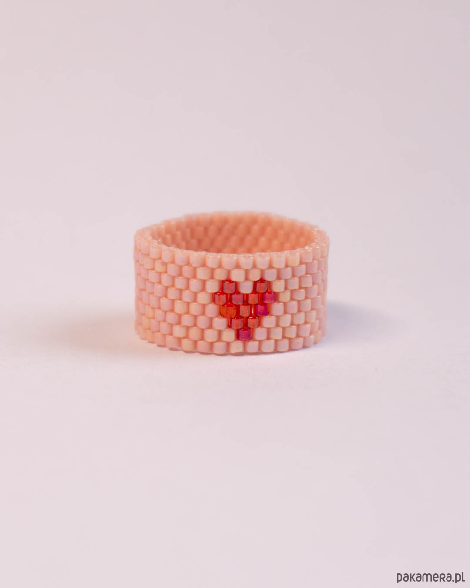 Różowy pierścionek w czerwone serce