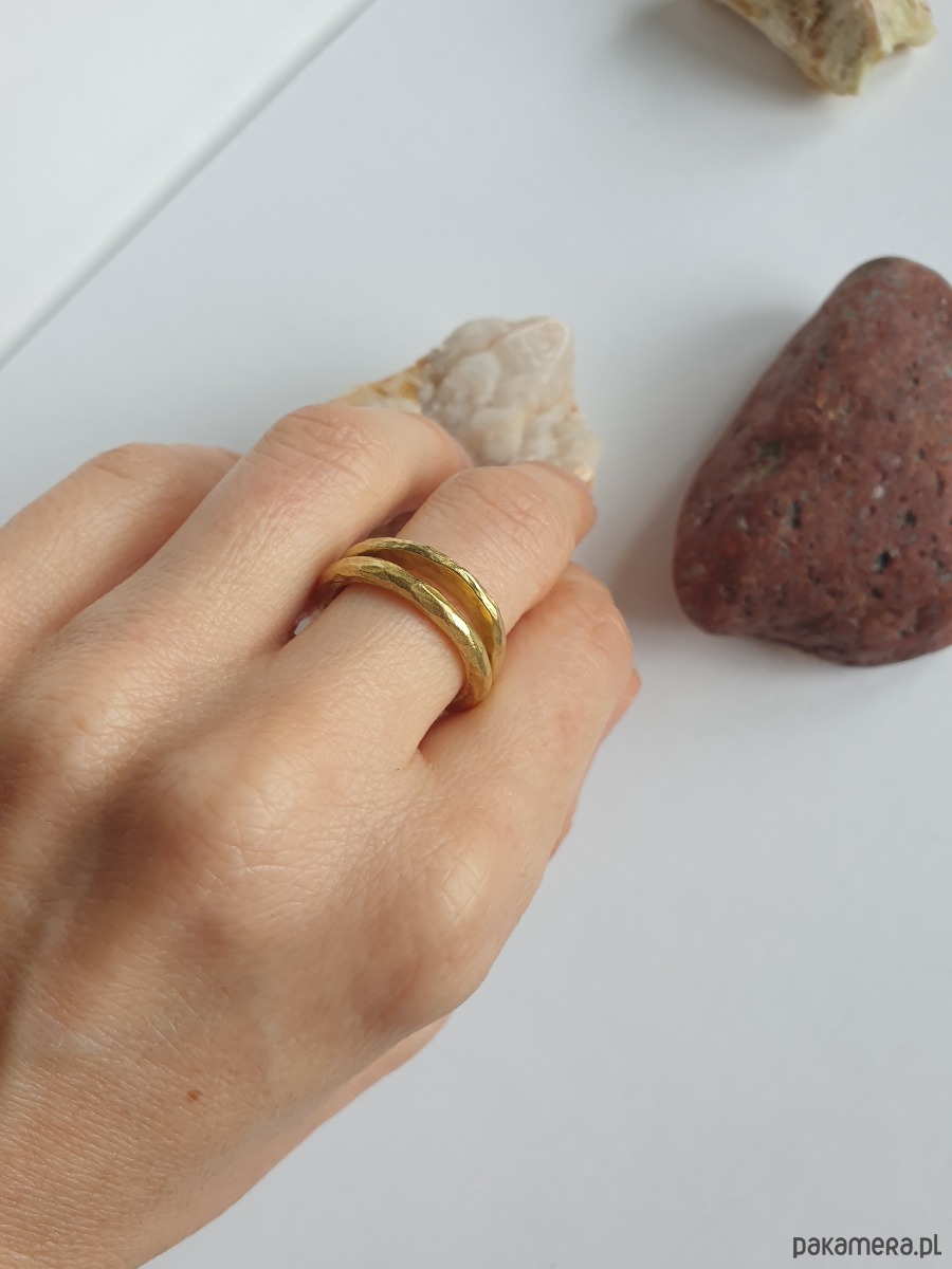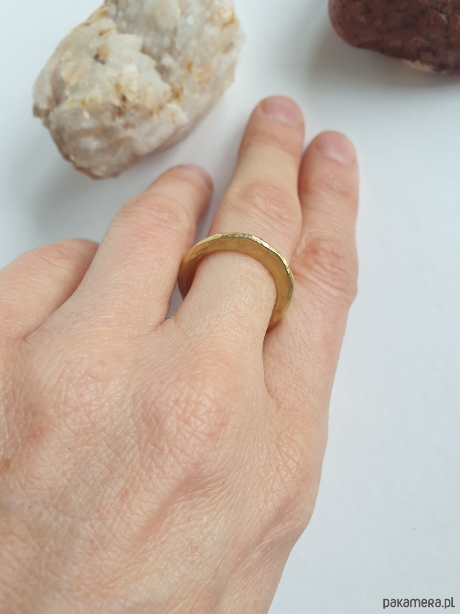 Pierścionek z surowego mosiądzu z kolekcji ZEN. Pierścień w minimalistycznym, rustykalnym stylu, ręcznie młotkowany i formowany, bardzo wygodny w noszeniu.
