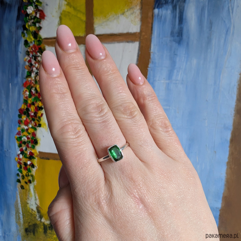 Pierścionek zieleń turmalinu
