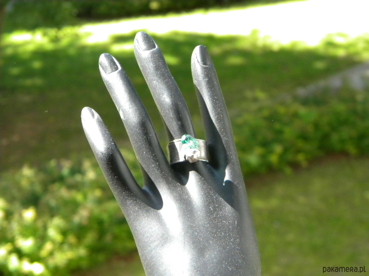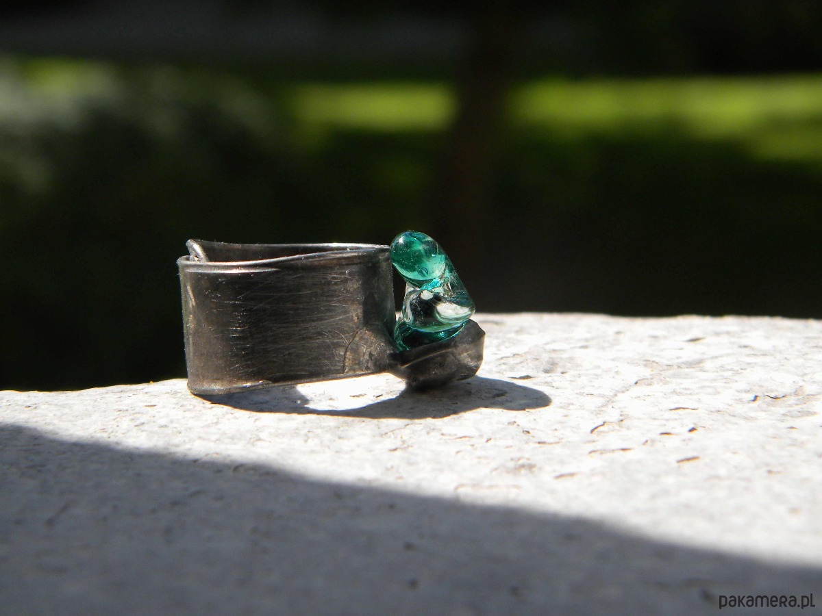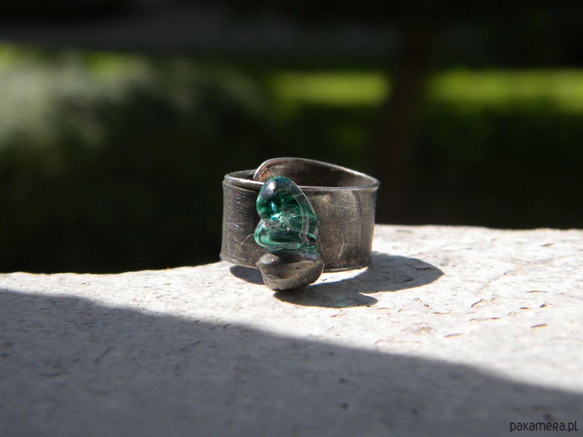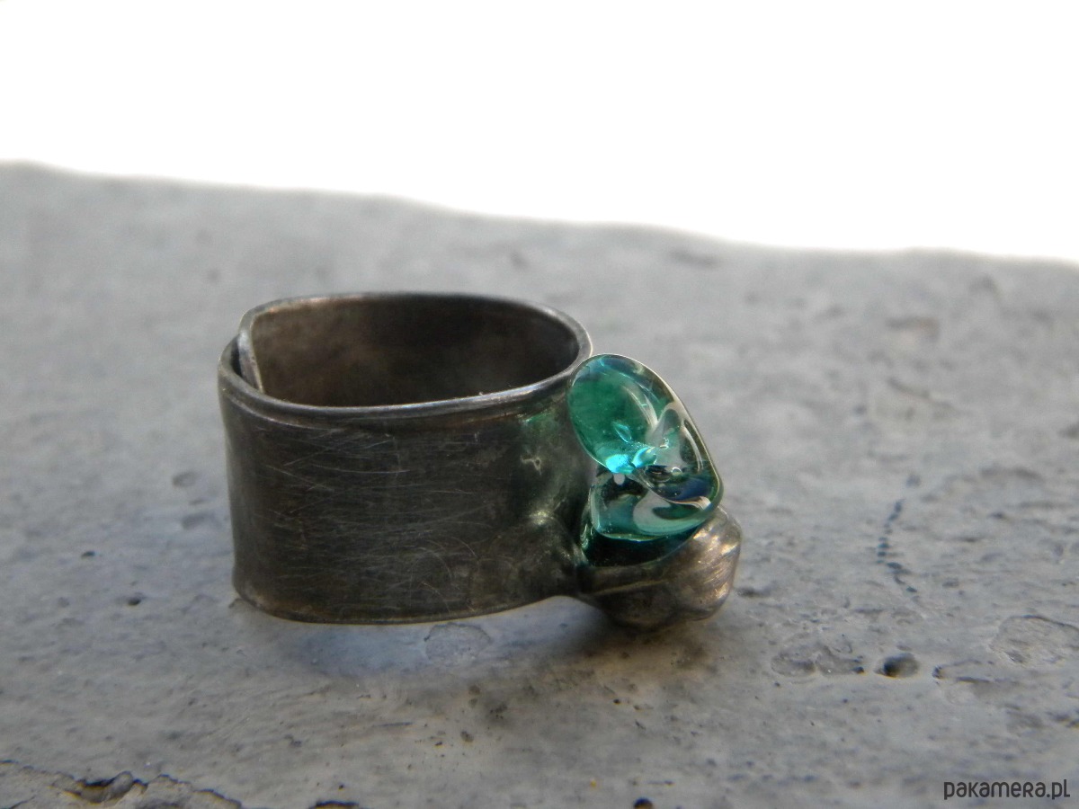 pierścionek. miedz, cyna, szkło.