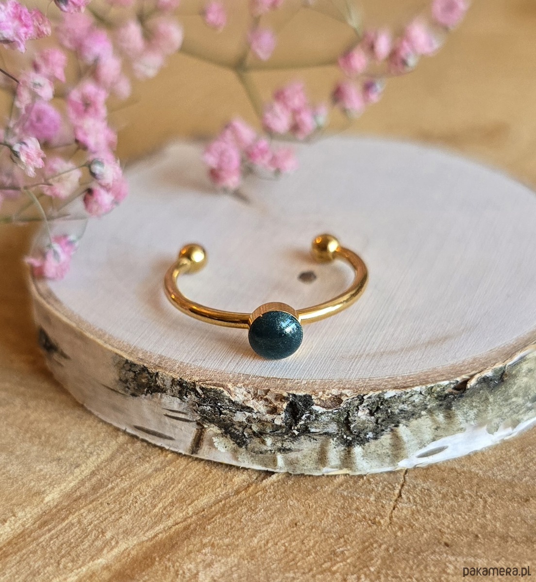 Pierścionek złoty zielone oczko zielony minimalistyczny żywica brokatowy