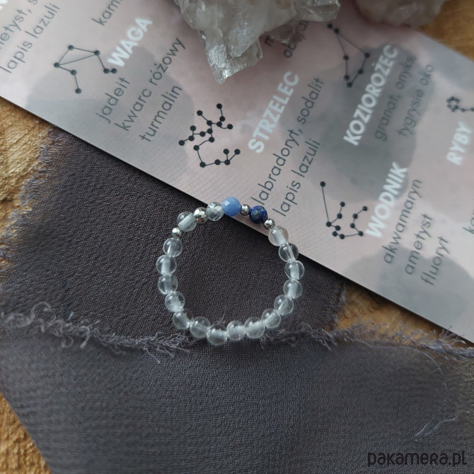 Delikatny, elastyczny pierścionek skomponowany dla zodiakalnego Strzelca. Znajdziesz w nim minerały, które w szczególny sposób sprzyjają osobom spod tego znaku zodiaku, takie jak labradoryt, sodalit czy lapis lazuli. Te wyjątkowe kamienie osadzone zostały na obrączce z gładkich kryształów górskich, będących odmianą kwarcu o najsilniejszych właściwościach oczyszczających. Kamienie uzupełnione są ozdobnymi elementami ze stali szlachetnej. Zodiakalny pierścionek to świetny pomysł na prezent w postaci spersonalizowanego talizmanu.