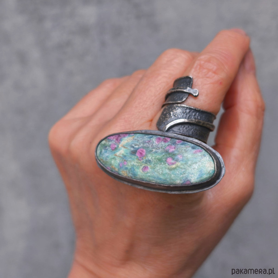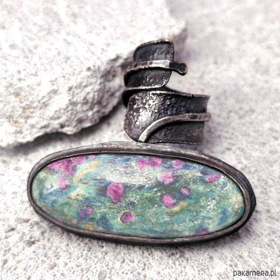 Pierścień - srebro, zoisyt z rubinem. Piękny kamień!
