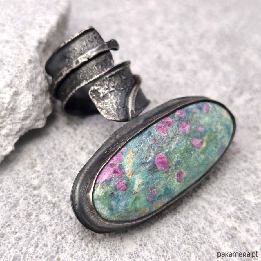 Zoisyt z rubinem - pierścień regulowany