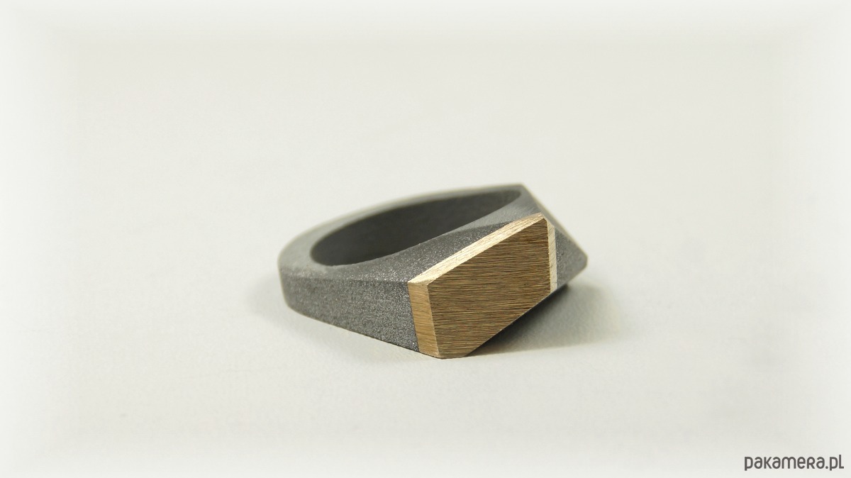 Ręcznie wykonany pierścionek w ciekawej minimalistycznej formie, łączony z mosiądzem. Rozmiar fi 18