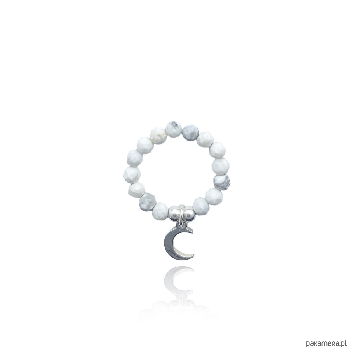 Pierścionek elastyczny Midnight Sky wykonany z unikatowego howlitu podkreśli każdą Twoją stylizację. Jego piękna biel będzie subtelnie kontrastować z Twoją letnią opalenizną, a zawieszka księżyc nada charakteru Twoim dodatkom.