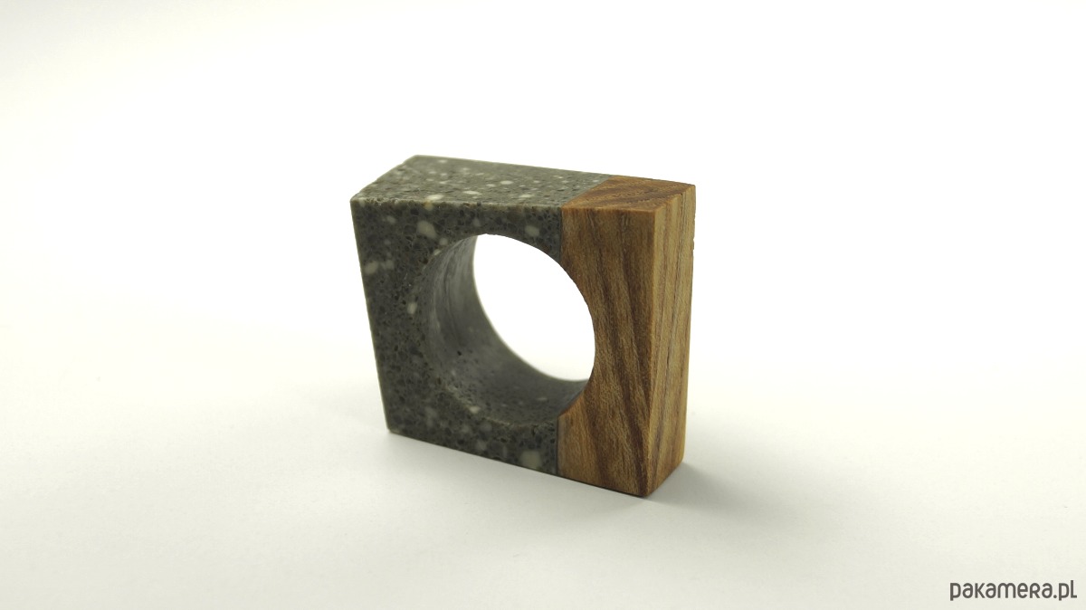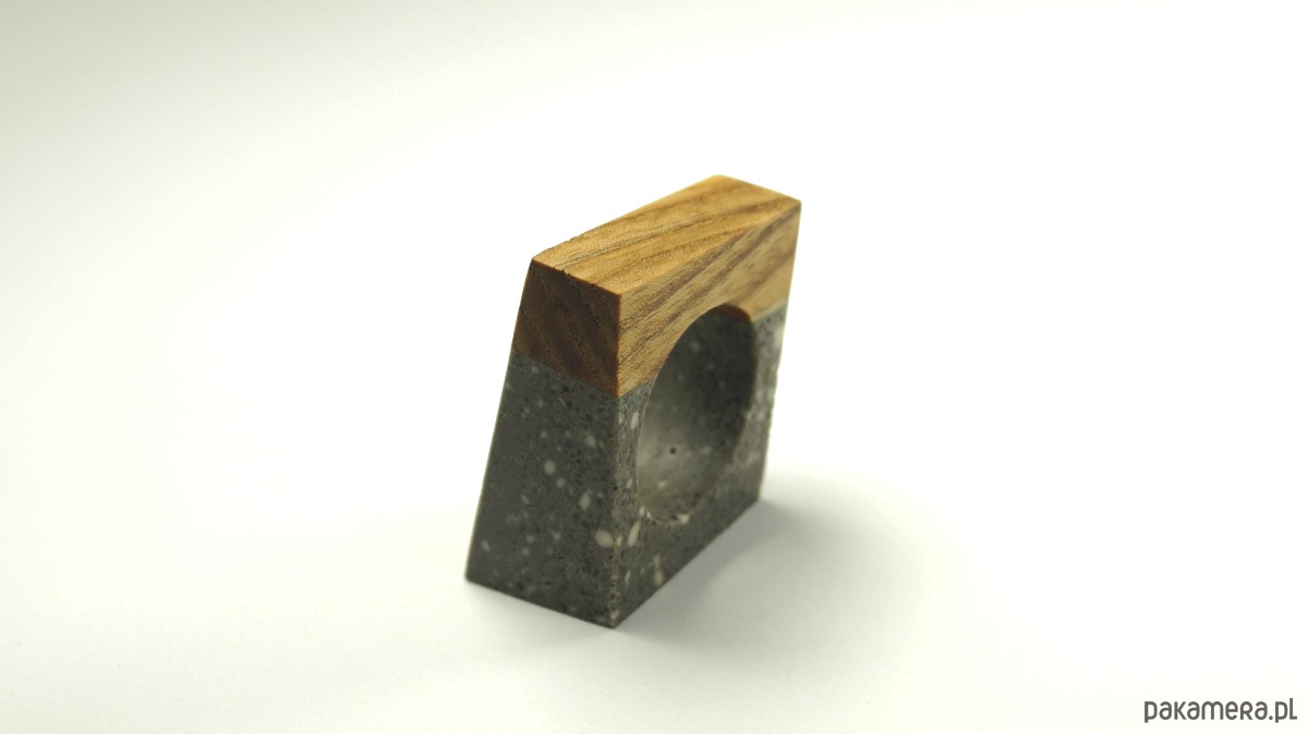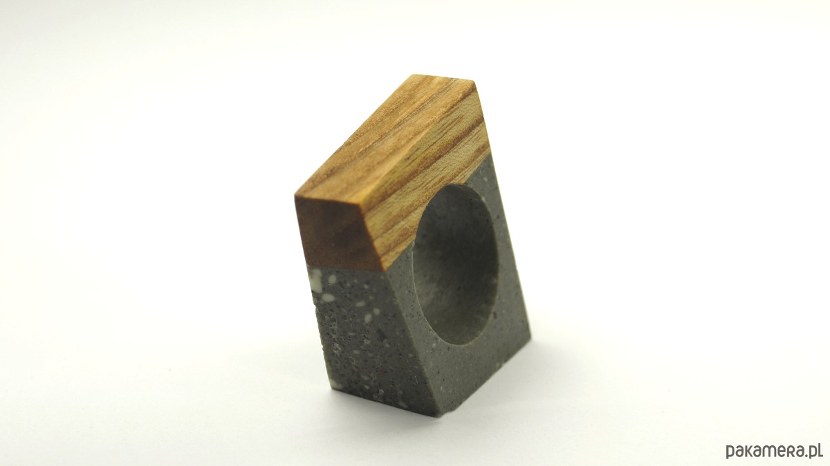 Ręcznie wykonany, betonowy pierścionek w ciekawej minimalistycznej formie, łączony z drewnem dębu. Rozmiar fi 18