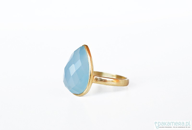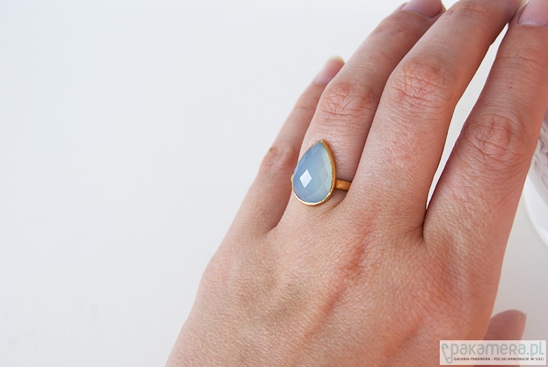 Pierścionek srebro925/pozłacane chalcedonit blue