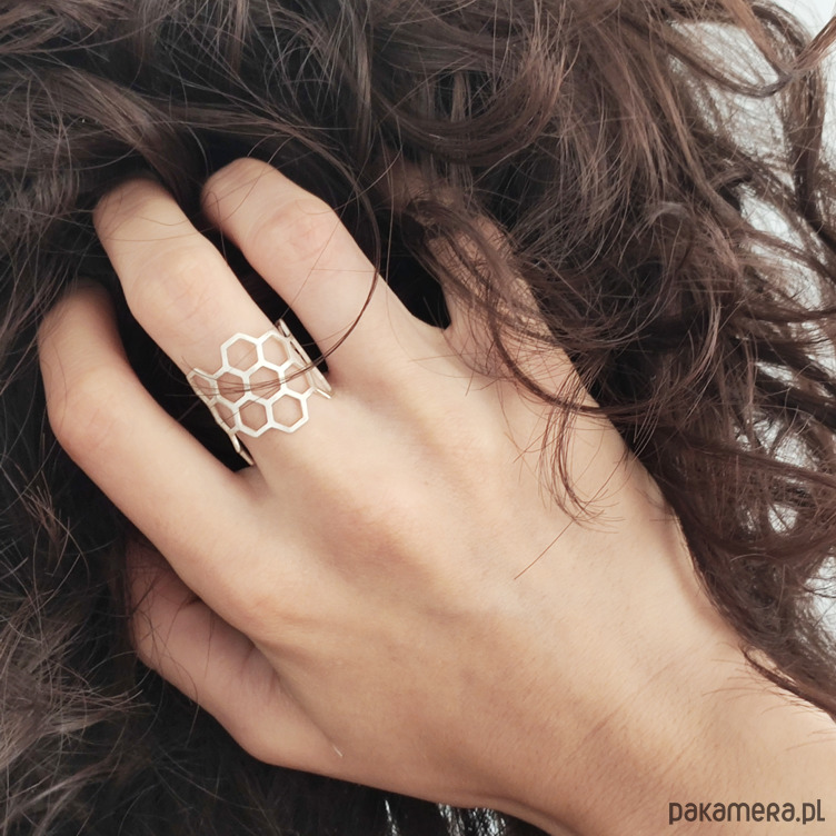 Srebrny pierścionek z serii Plaster Miodu, inspirowany naturą, otulający pięknem podczas długich, zimowych wieczorów...