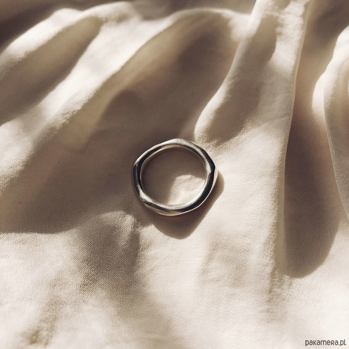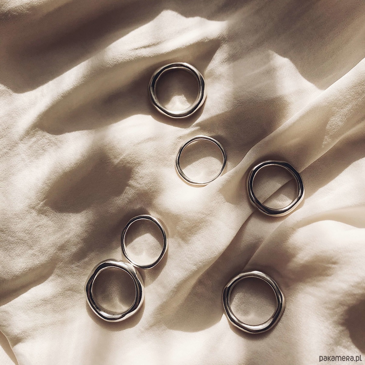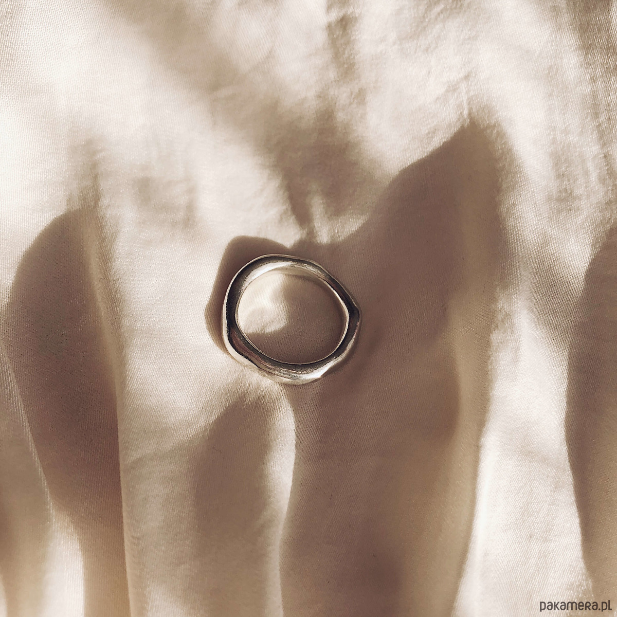 Nieregularny pierścionek z kolekcji "Liquid", zainspirowany płynnym srebrem. Całość wykonana ze srebra próby 925. Wybierz odpowiedni rozmiar. Na zdjęciu porównanie pierścionków Liquid: Small, Medium, Big.