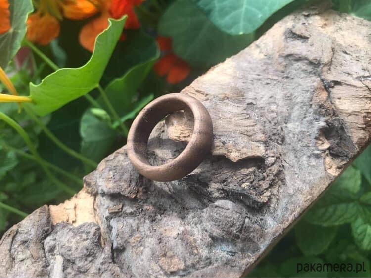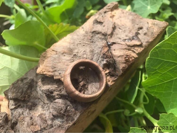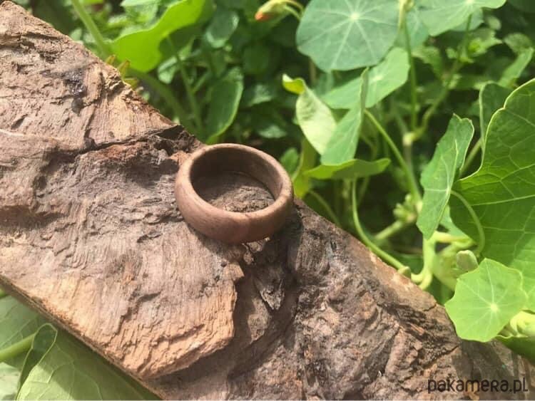 Przepiękny, minimalistyczny pierścionek wykonany w 100% ręcznie z drewna. Ma prosty kształt "obrączki" dzięki czemu będzie ładnie prezentował się na każdym palcu a wybór materiału sprawia że pierścionek wygląda bardzo osobliwie jak i są wyjątkowo lekkie. Każdy drewniany pierścionek zabezpieczam kilkoma warstwami cyjanoakrylu, które nadają odporności na wodę jak i codzienne użytkowanie i zapewniają trwałość.