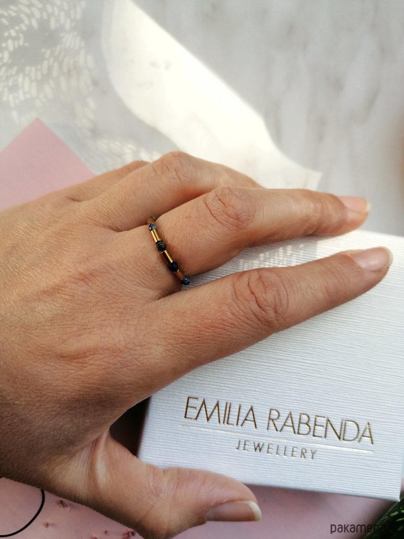 Pierścionek z hemtytów i fasetowanych koralików z lapis lazuli.Pierścionek jest na elastycznej silikonowej żyłce. Rozmiar na życzenie. Pakuję w eleganckie pudełeczko.