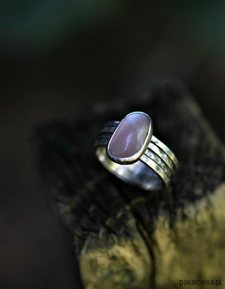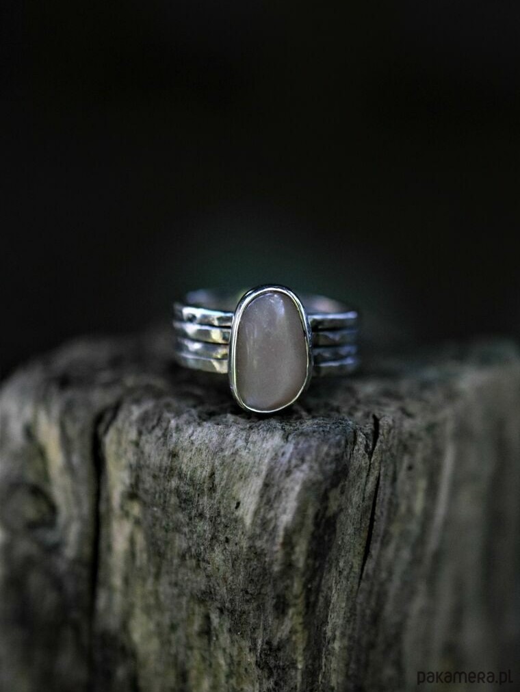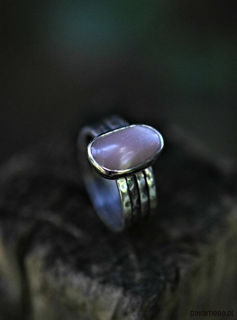 Użyte materiały: Ag 925, owalny różowy kamień księżycowy