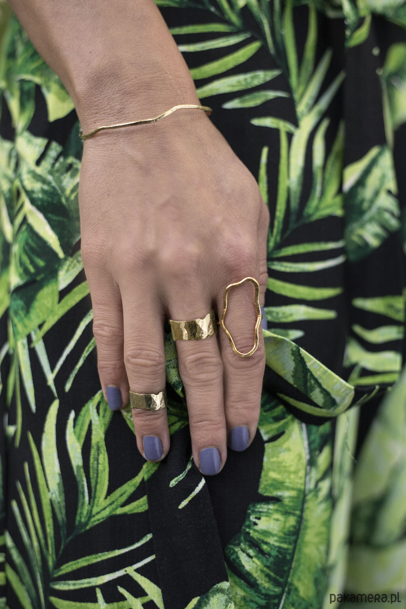 Efektowny pierścionek o niepowtarzalnym kształcie, każdy jest inny, gdyż każdy formujemy ręcznie. Faktura pięknie odbija światło.