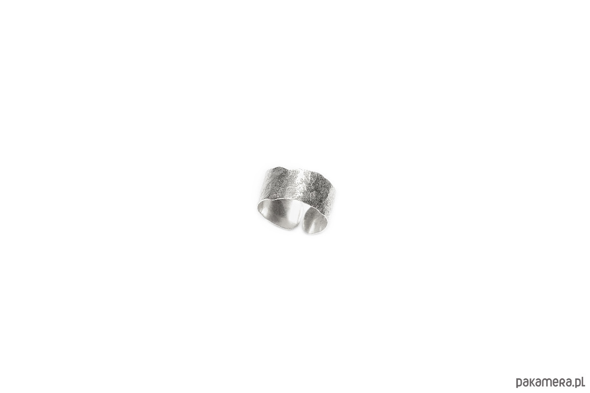 Efektowny pierścionek o niepowtarzalnym kształcie, każdy jest inny, gdyż każdy formujemy ręcznie. Faktura pięknie odbija światło.