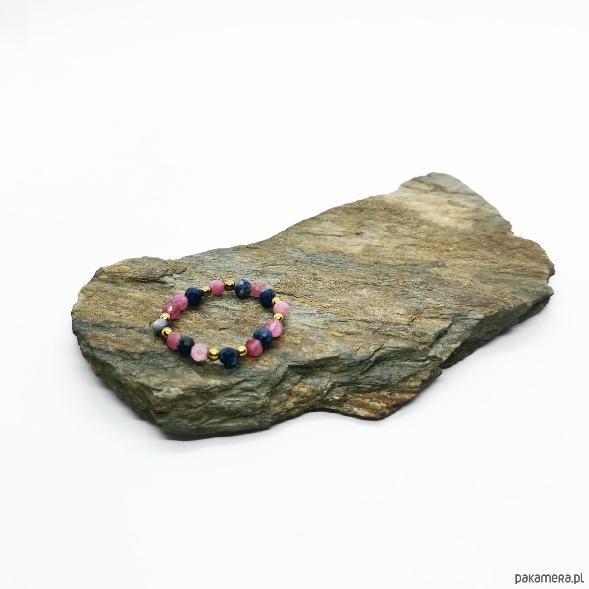 Pierścionek wykonany jest z kamienia w rozmiarze 3mm i 2mm.