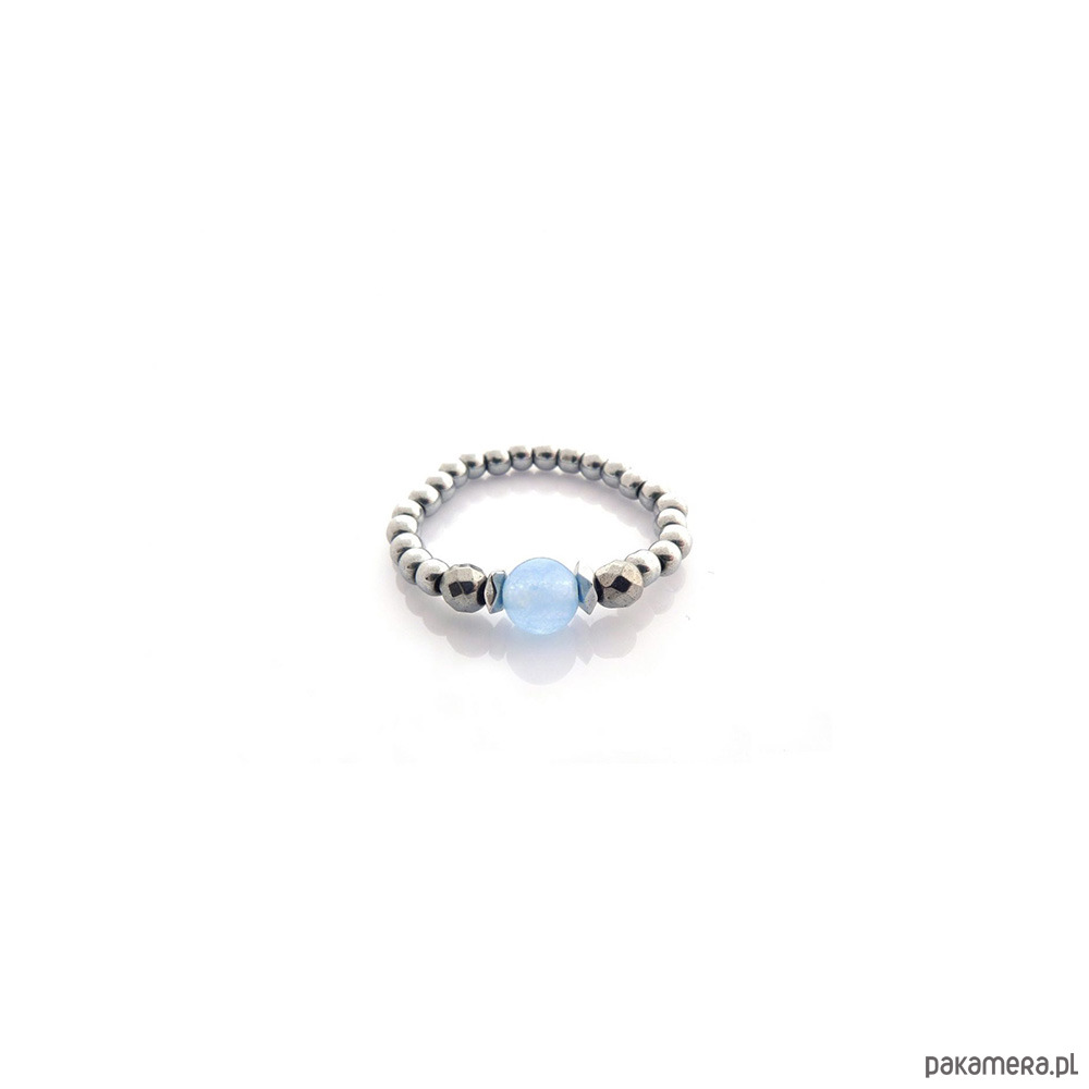 Pierścionek elastyczny wykonany w całości z kamieni naturalnych - hematytów oraz jadeitu. Obręcz pierścionka budują gładkie hematyty w kolorze srebrnym. Główne oczko to jadeit w przepięknym jasno niebieskim kolorze. Ten elastyczny pierścionek to ciekawy, modowy dodatek do codziennej stylizacji. Pierścionek wykonany jest na wysokiej jakości gumce silikonowej. Jest bardzo wygodny i może być świetną alternatywą, jeśli nie możesz nosić standardowego pierścionka.
