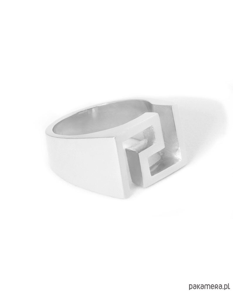 Jego subtelna i geometryczna forma nadaje mu niepowtarzalny, elegancki charakter. Wykonany z najwyższej jakości próby srebra 925, ten sygnet to nie tylko biżuteria, to prawdziwe dzieło sztuki. Wykończenie polerowane dodaje mu lśnienia, a waga około 11 gramów (w zależności od rozmiaru) sprawia, że noszenie go jest czystą przyjemnością.