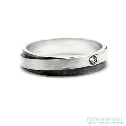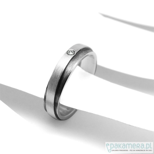 Pierścionek z białego złota z diamentem H/Si o średnicy 1,5 mm. Prosty pierścionek należy do kolekcji Wstęgi i wyróżnia się prostotą formy. Szeroki na 6 mm. Jego powierzchnia jest delikatnie satynowana i częściowo rodowana na czarno. Wykonany ze złota próby 0,5865 (14K). Proszę podaj rozmiar jubilerski lub średnicę wewnętrzną pierścionka po złożeniu zamówienia - wykonam każdy rozmiar. Wysyłam zapakowany w ozdobne pudełko.