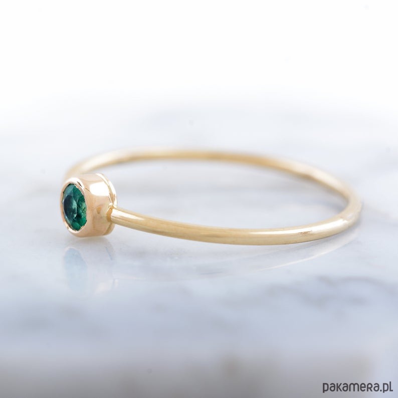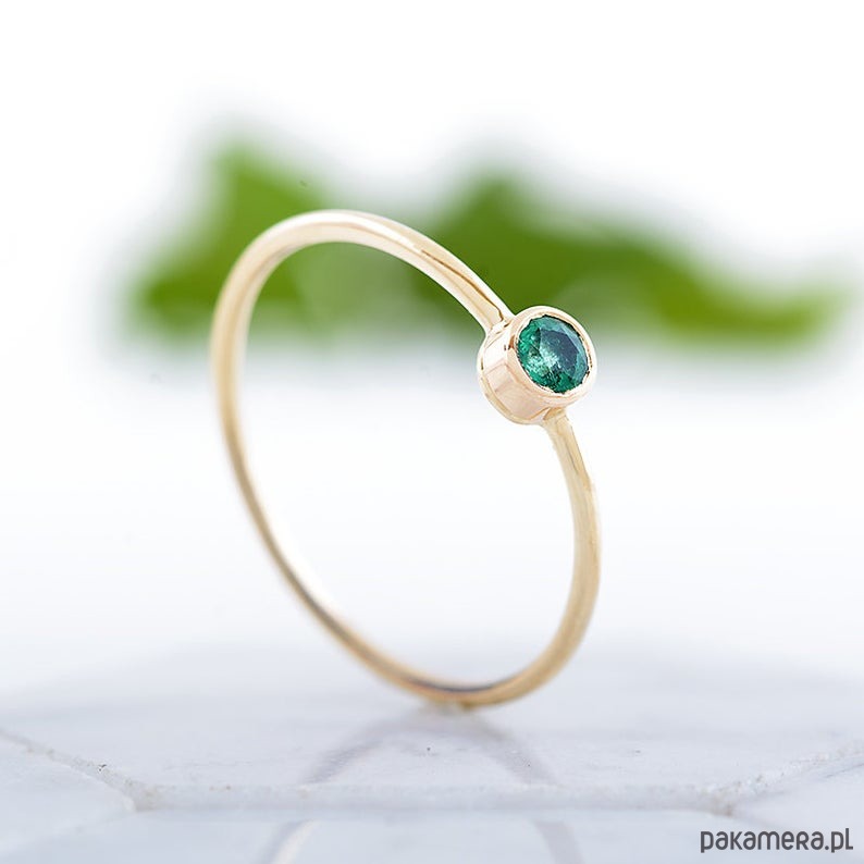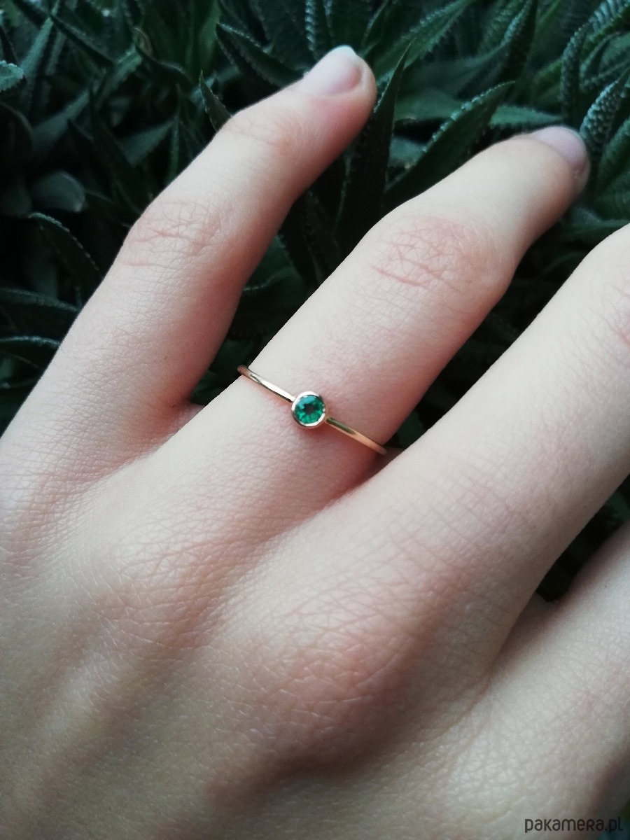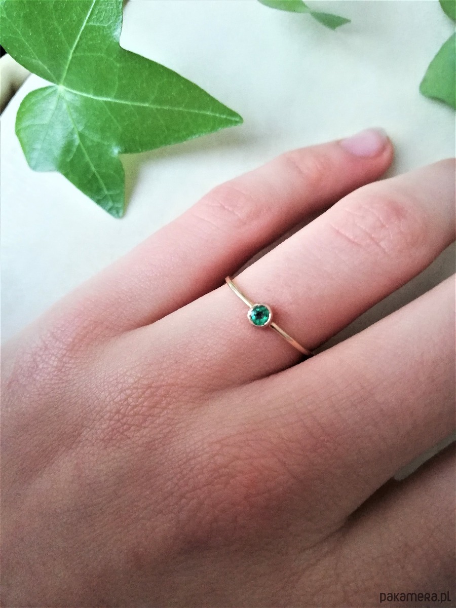 Delikatny pierścionek z naturalnym szmaragdem.