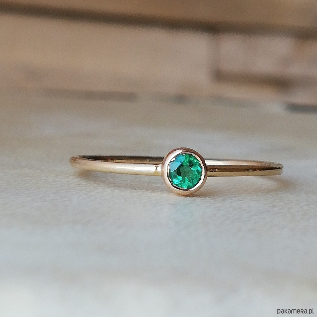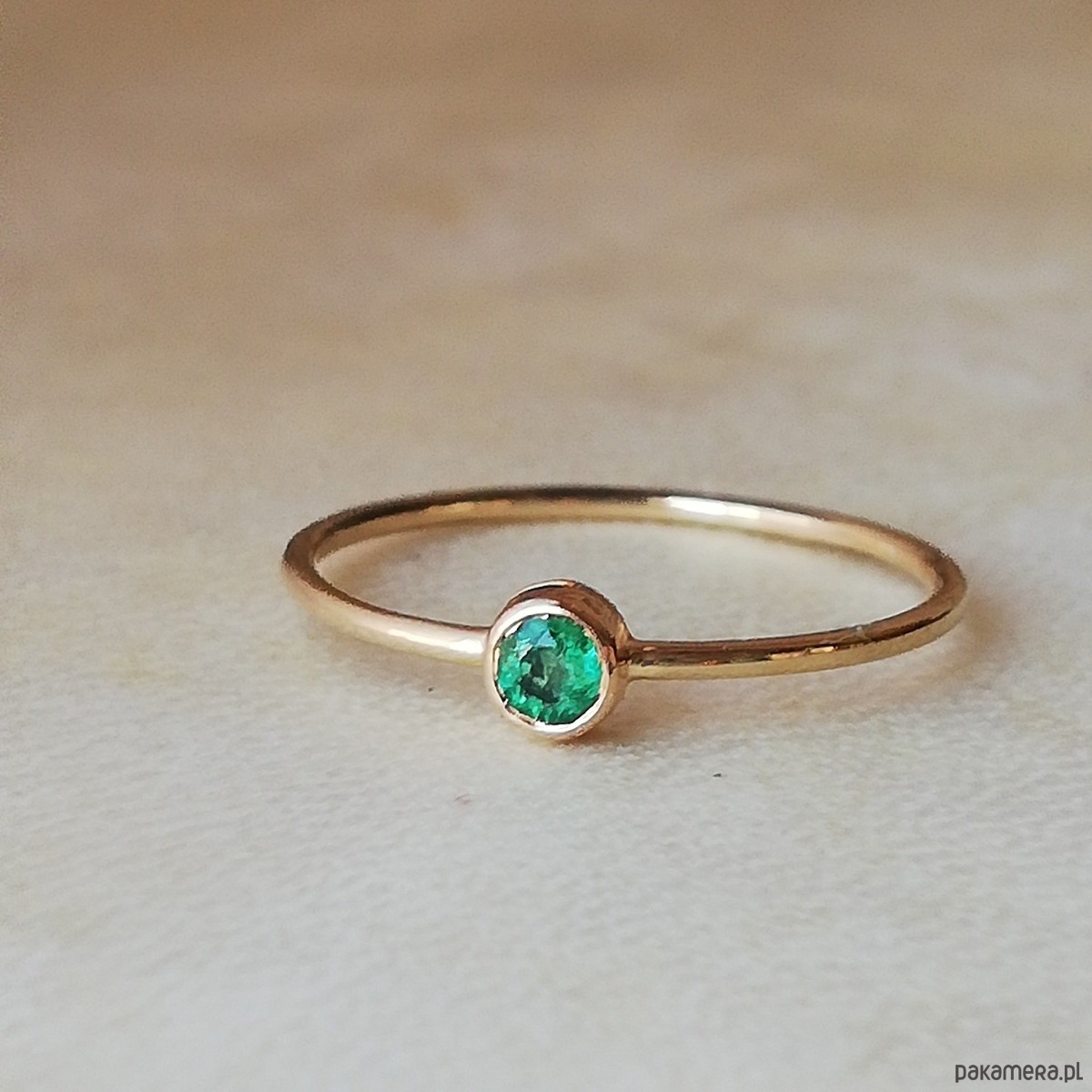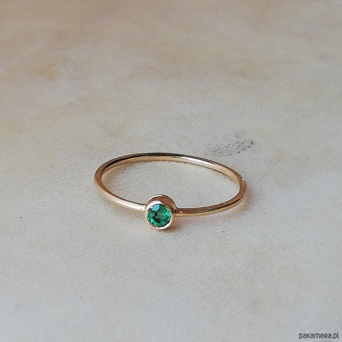 Delikatny pierścionek z naturalnym szmaragdem.