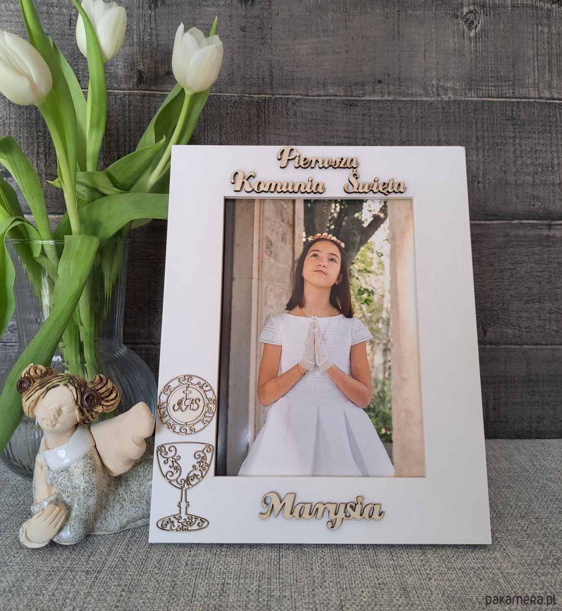 Aby upamiętnić ten szczególny dzień wykonujemy mnóstwo zdjęć, które będą stanowić pamiątkę zarówno dla dziecka jak i dla najbliższej rodziny. Specjalnie na tą okazję w naszej Manufakturze została zaprojektowana drewniana, komunijna ramka na zdjęcia.