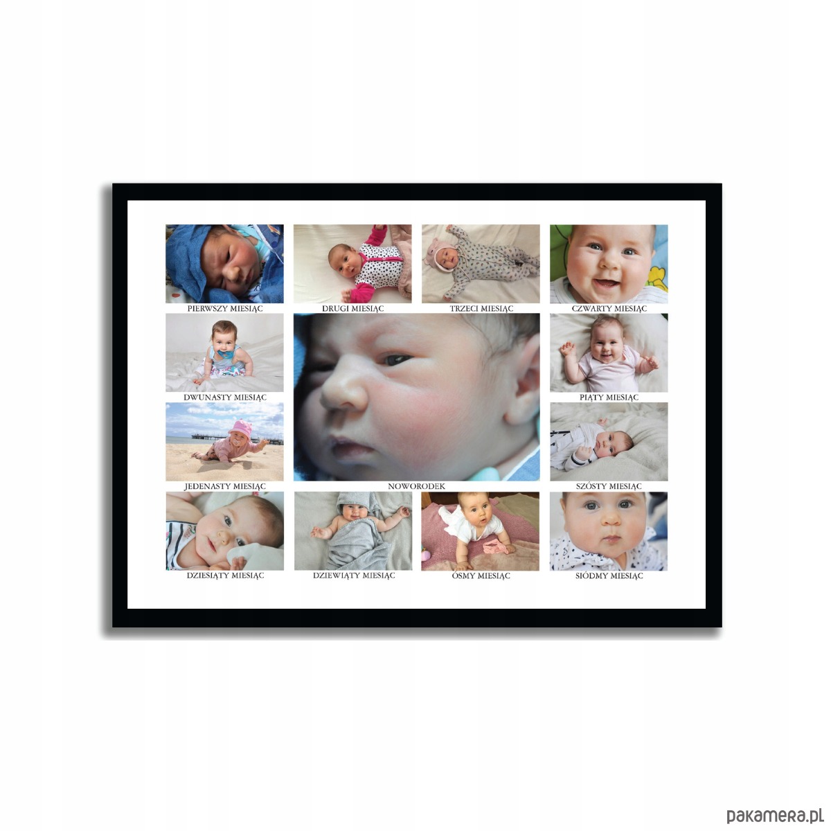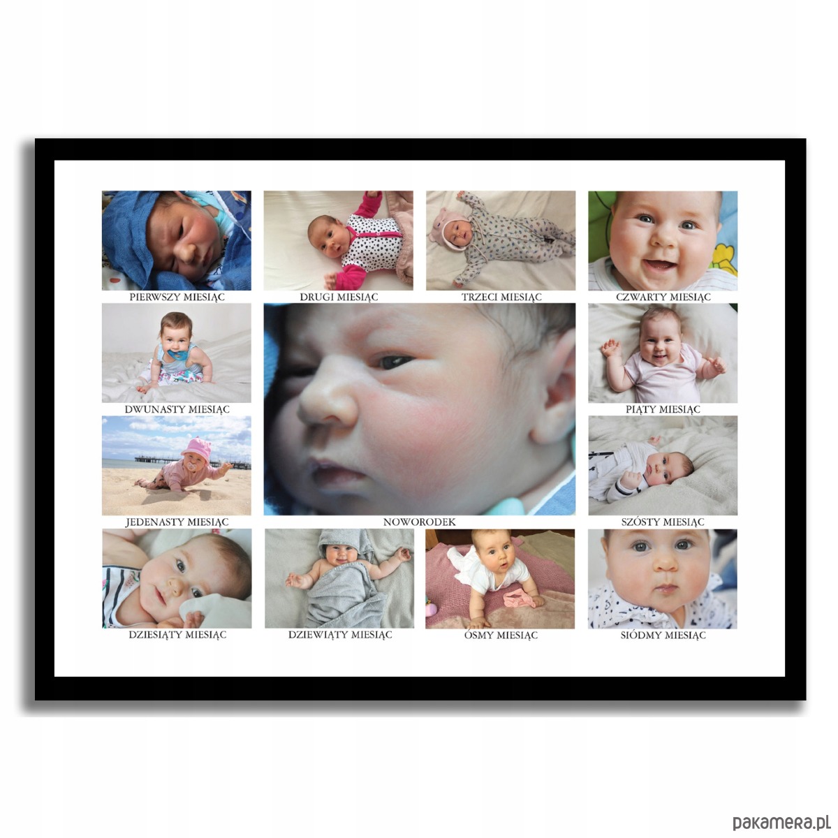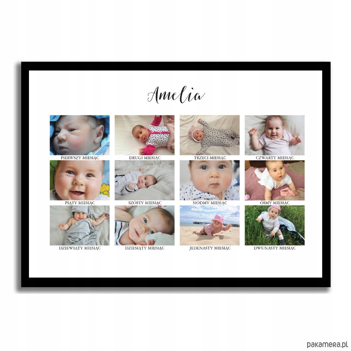 Piękna metryczka z pierwszych 12 miesięcy życia pociechy. Kolaż wspaniale uchwyci wspomnienia, emocje, wydarzenia, jakim towarzyszą pierwsze miesiące życia maleństwa, pozwoli zapamiętać je na zawsze, pięknie dekorując dom.
