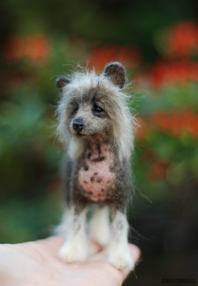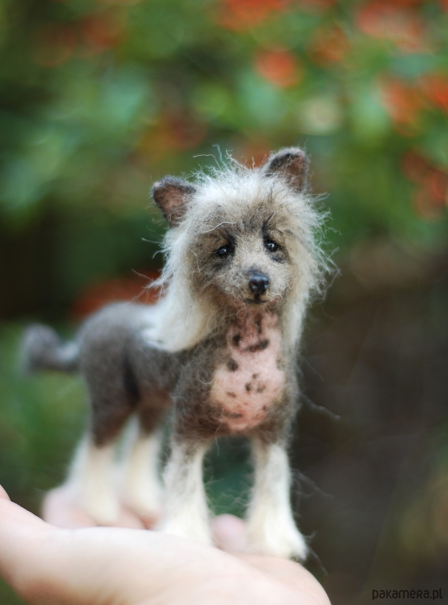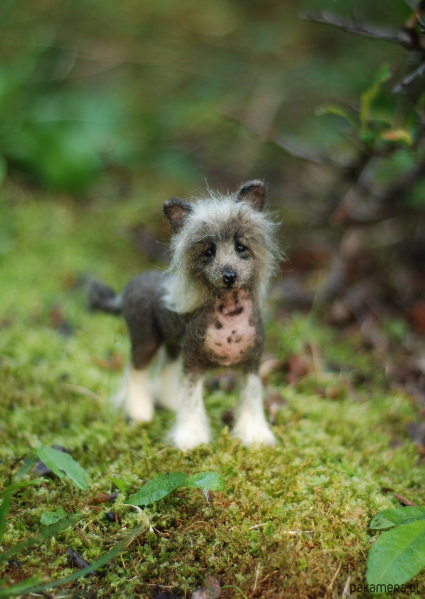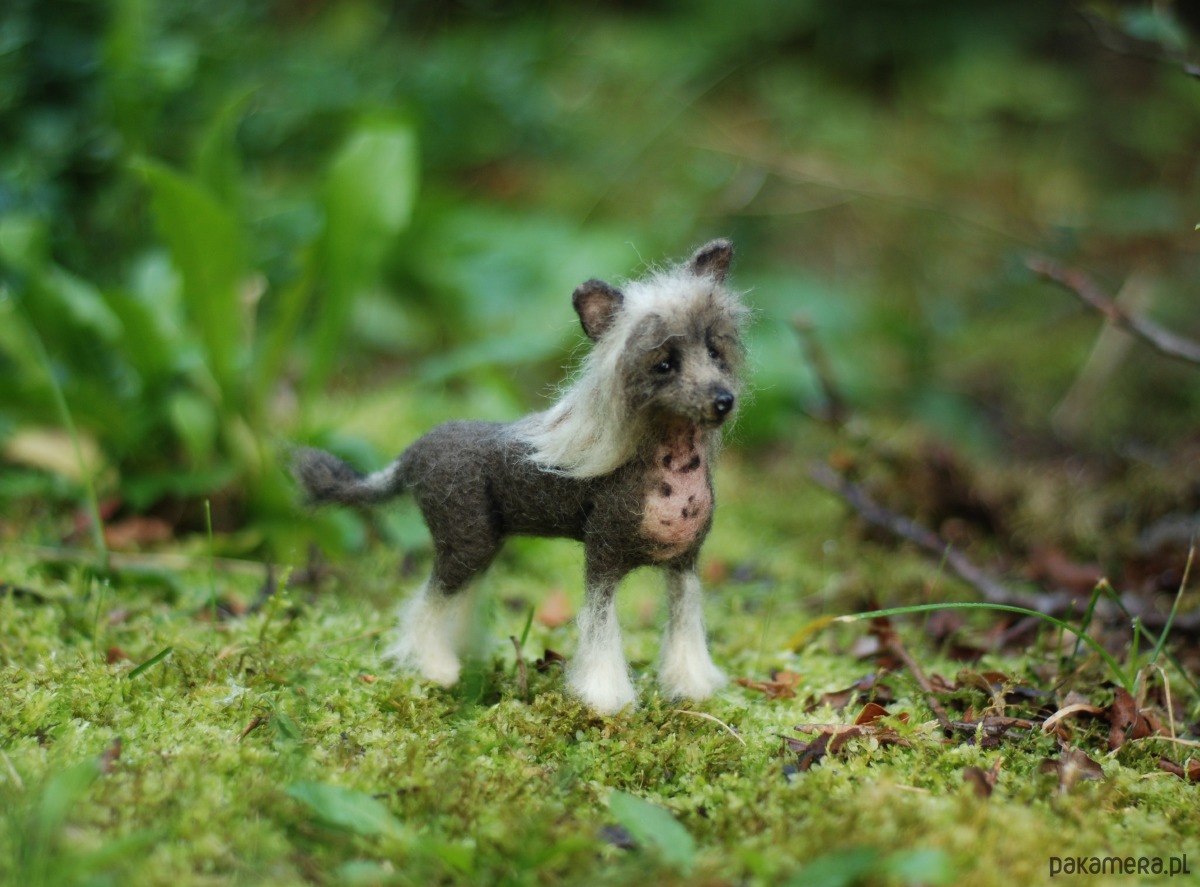 Pies wykonany metodą filcowania na sucho z wełny merynos.