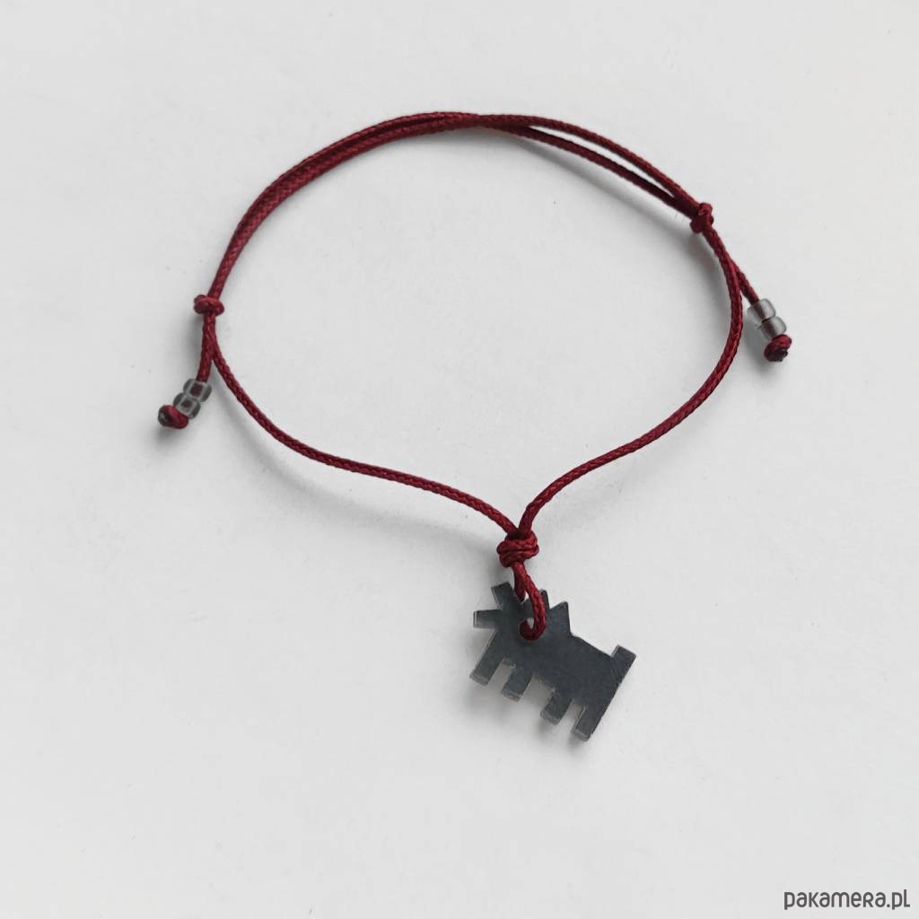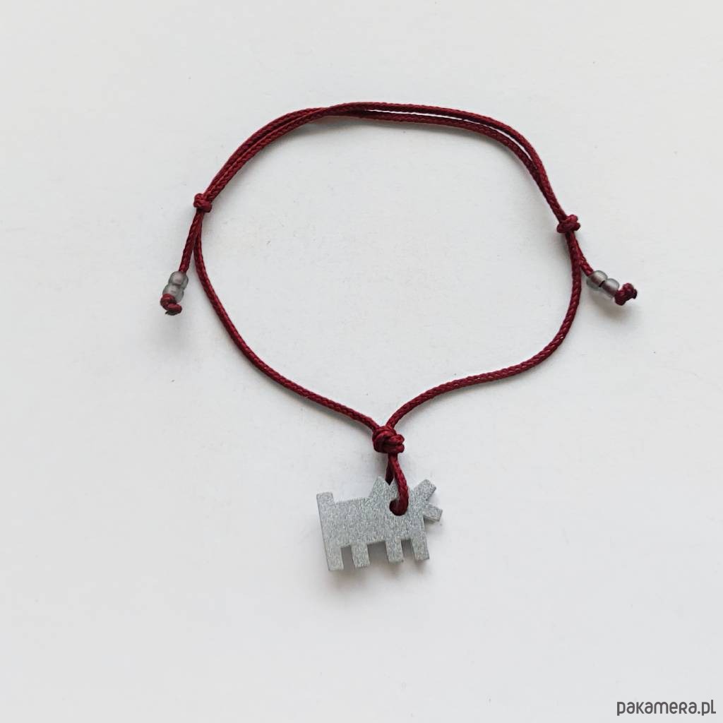 PIESEK bransoletka- zabawny dodatek. Ciekawy dodatek przykuwają uwagę i zaskakuje wzornictwem. Taka bransoletka sprawi, że każda stylizacja nabierze niepowtarzalnego, fantazyjnego charakteru. Bransoletka wykonana jest z: tworzywo sztuczne, ozdobny sznurek, szklane koraliki. Długość zawieszki 1,7 cm. Szeroko - 1,3cm. Zdjęcia wykonane z dwóch stron zawieszki.