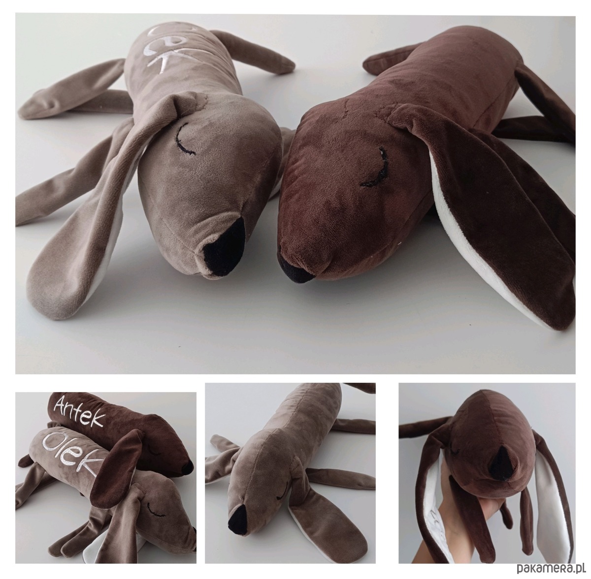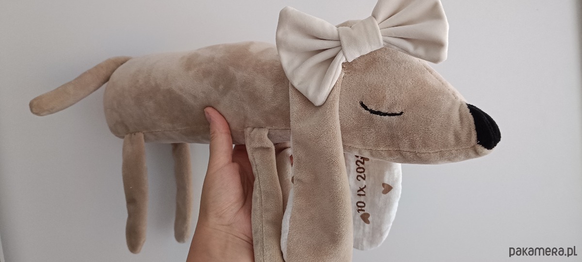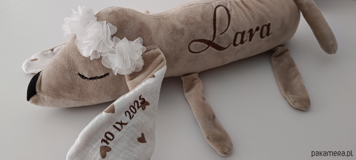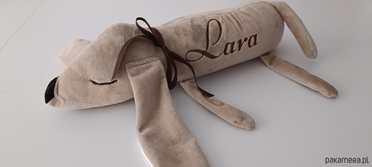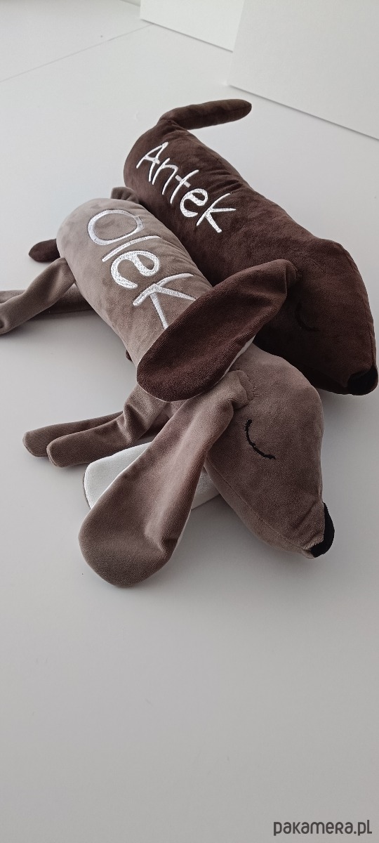 Szukasz personalizowanej maskotki dla dziecka? Polecamy nasze słodkie pieski jamniczki . Te śpiochy są idealne do przytulania ale i wygodnie się na nich śpi:) Na pieskach haftujemy dowolny krótki napis np imię, metryczkę w dowolnej czcionce, kolorze. Kolor pieska również do ustalenia:)