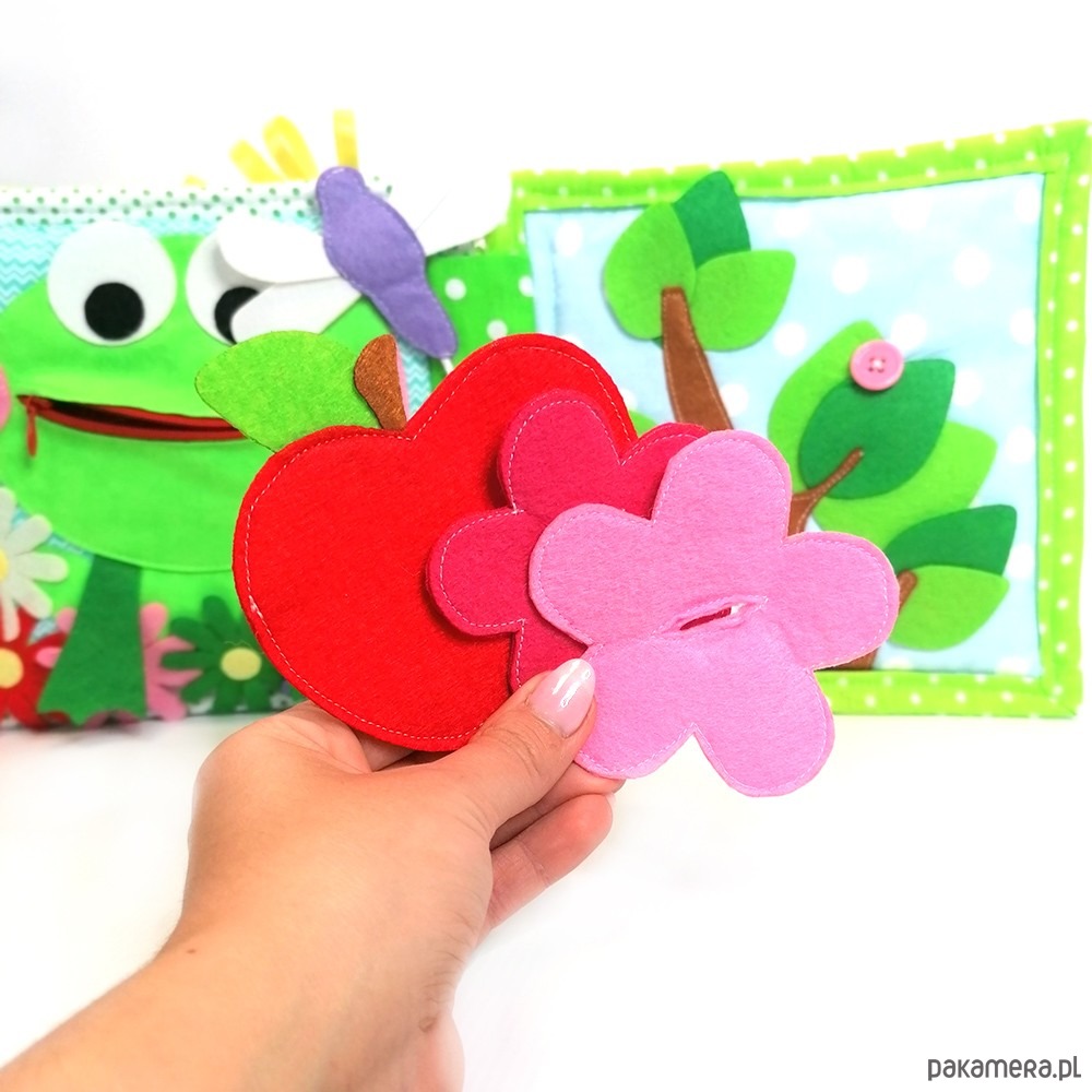 5. duża gałąź z jabłkiem zapinanym na rzep oraz kwiatkami zapinanymi na guziki.