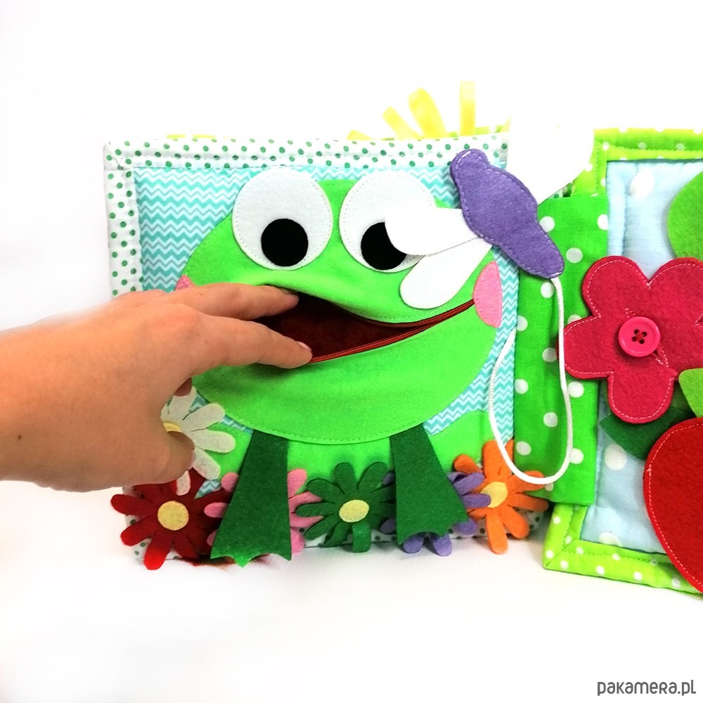 4. żaba z buzią na suwak oraz ważka na sznureczek do karmienia żaby.
