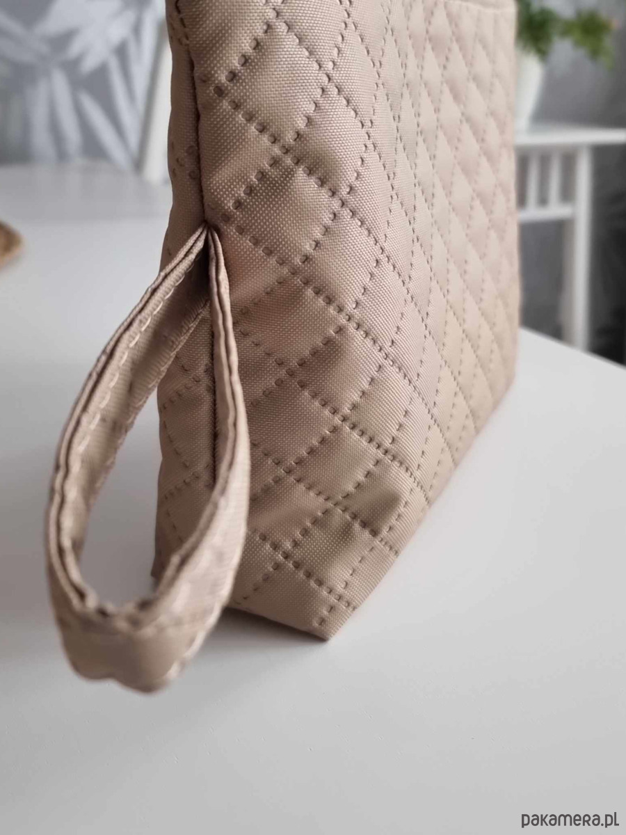 Pikowana beżowa kosmetyczka wodoodporna unisex KW019U