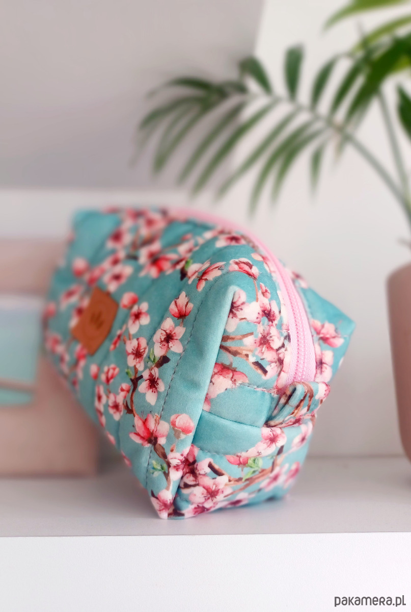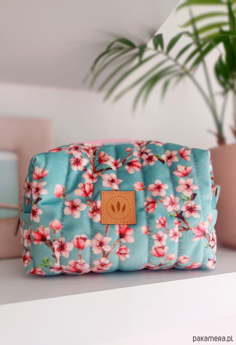 Pikowana kosmetyczka z weluru Kwiatuszki