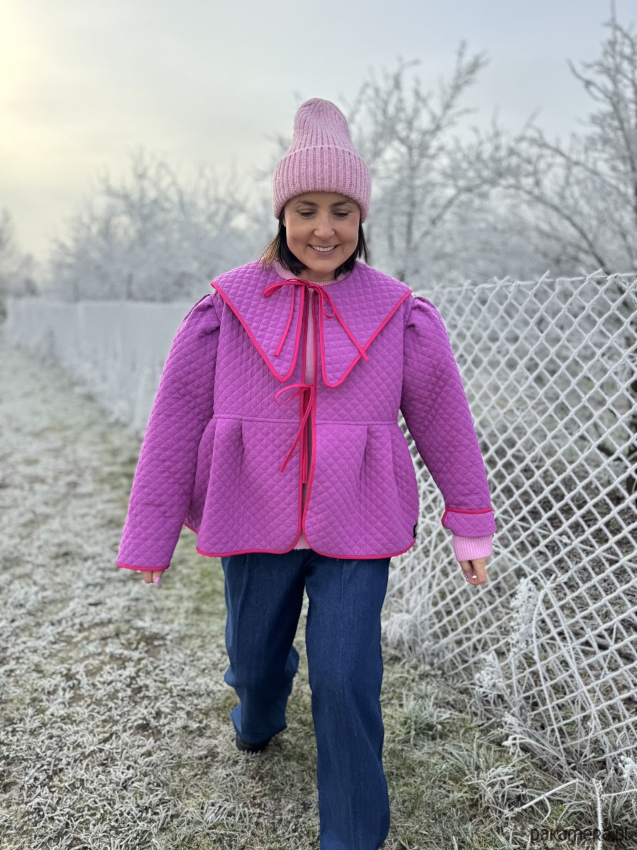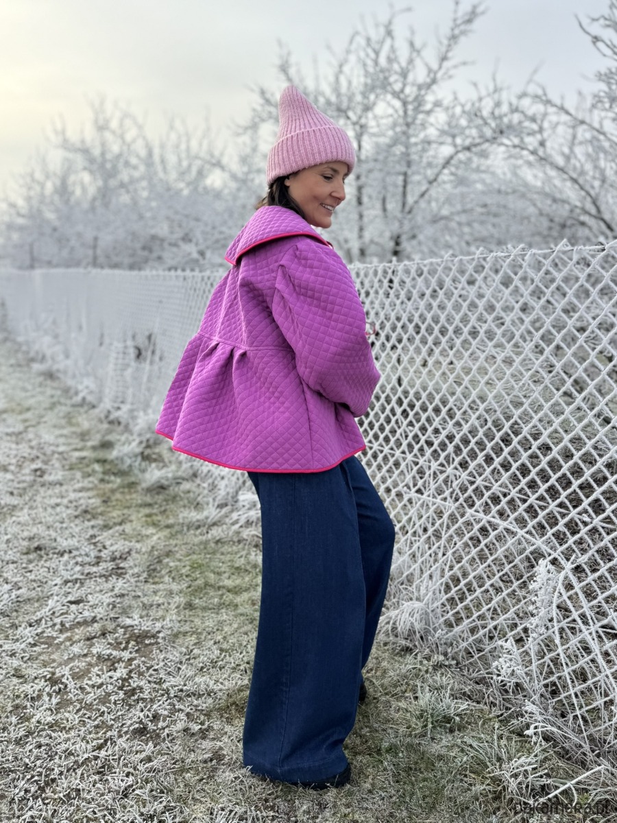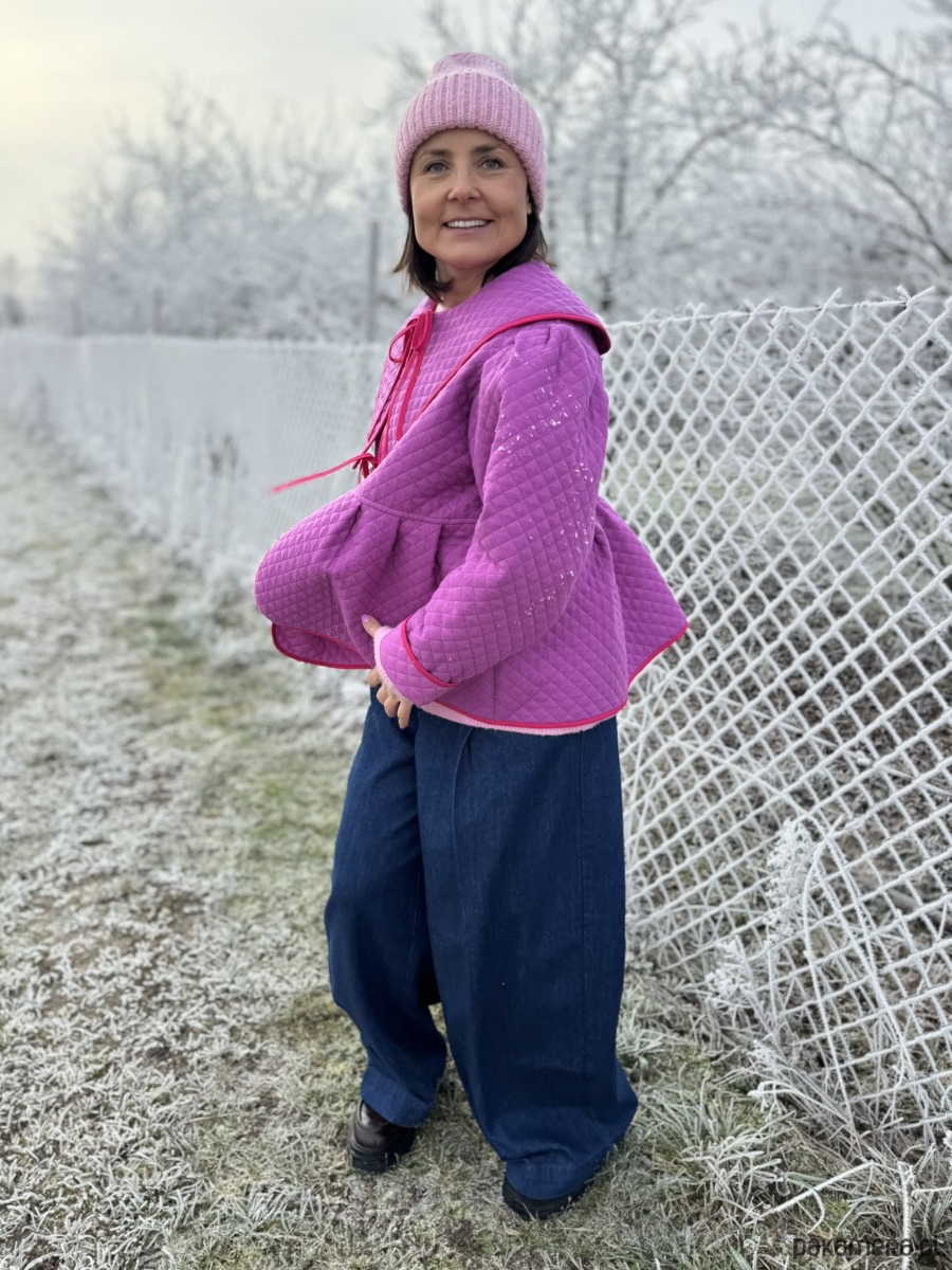 Dziewczęca, lekka i pełna uroku – ta pikowana kurtka to idealne połączenie wygody i wyrazistego designu. Miękka pikówka pięknie układa się na sylwetce, a marszczone bufki przy ramionach dodają całości romantycznego charakteru i subtelnej objętości.