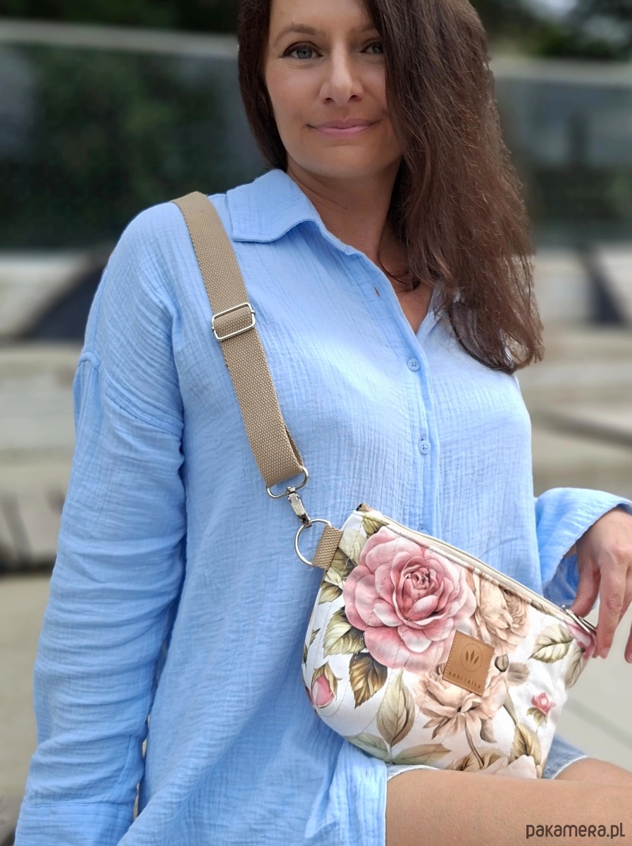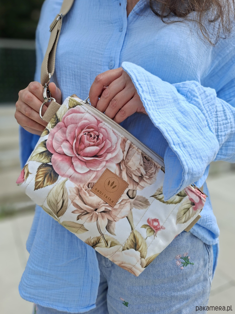 Pikowana nerka z weluru w pastelowe róże Sofia No2